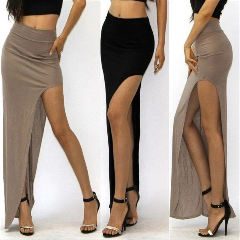 Womens High Waist Skirt Sexy Long Skirts Lady Novelty Open Side Split High Waist High Slit Long Maxi Skirts