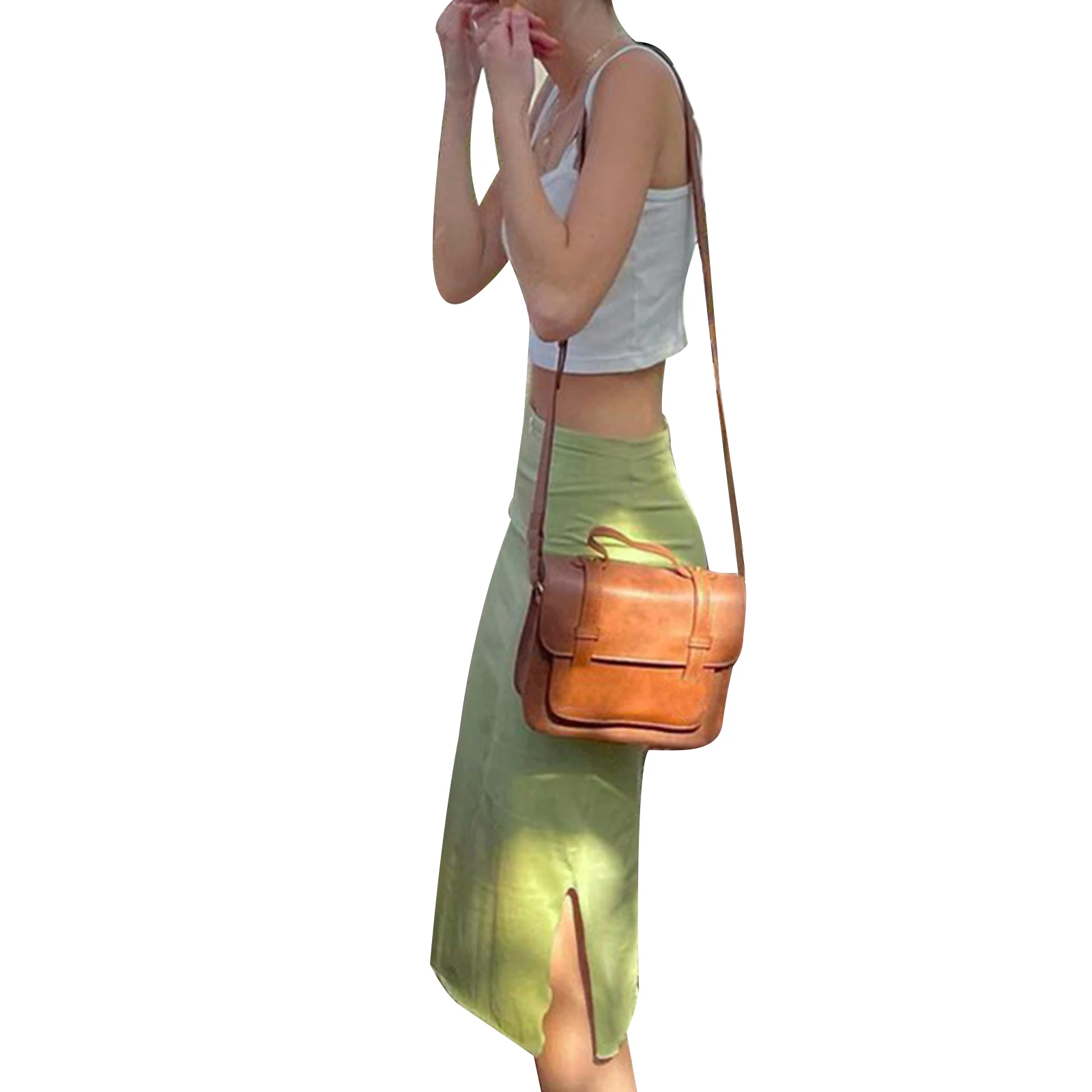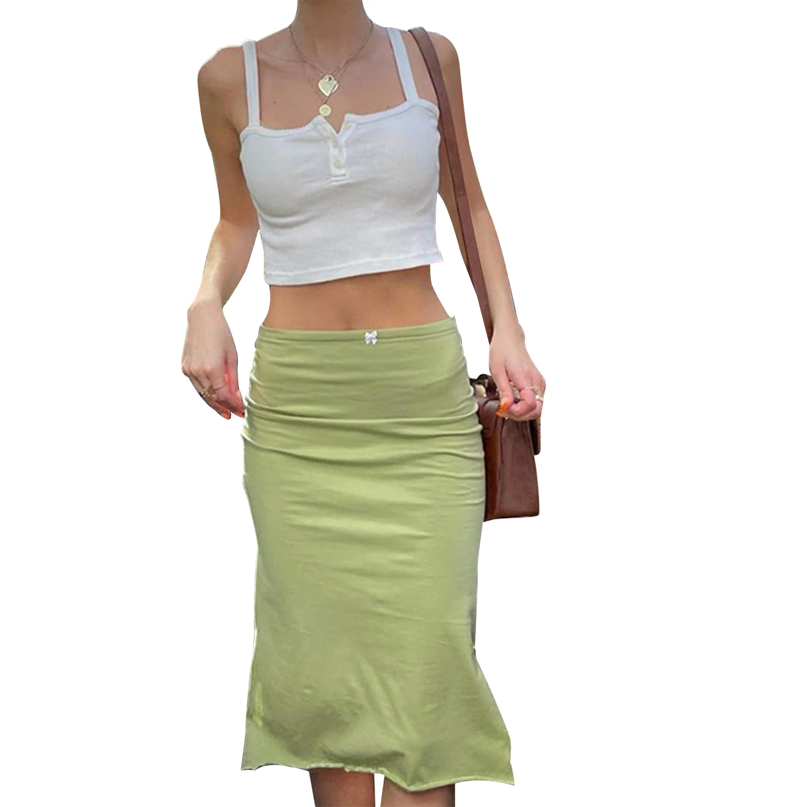 Women's Bodycon Midi Skirt Casual Summer Skirt Solid High-Waist Side Slit Girls Ladies Bust Skirt No Lining Pencil Skirt