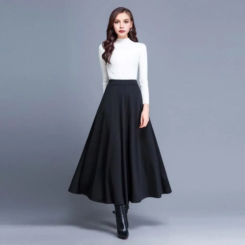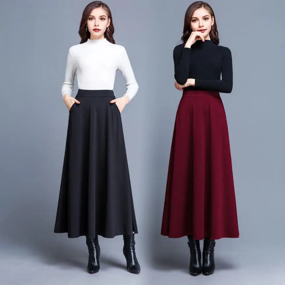 A-line Maxi Skirt Elegant Women's Maxi Skirt Collection High Waist A-line Skirt with Pockets Solid Color Swing for Any