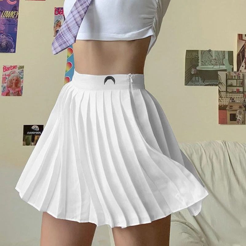 Women's Gothic Pleated Mini Skirt, White Short Skirt, Elastic Waist, Sexy Y2K, Sports, Tennis, New, Summer