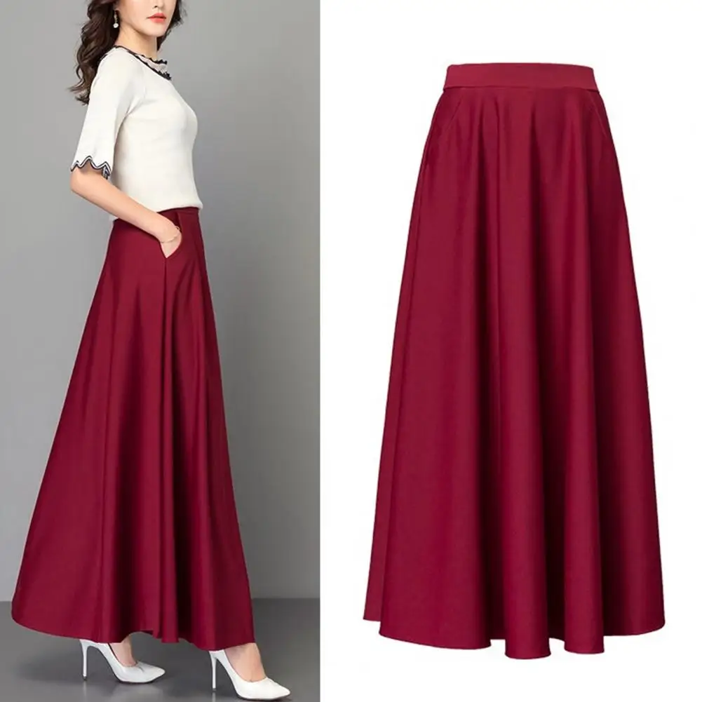 High Waist Skirt Temperament Skirt Stylish High Waist Maxi Skirt with Tummy Control A-line Silhouette Pockets for Women's