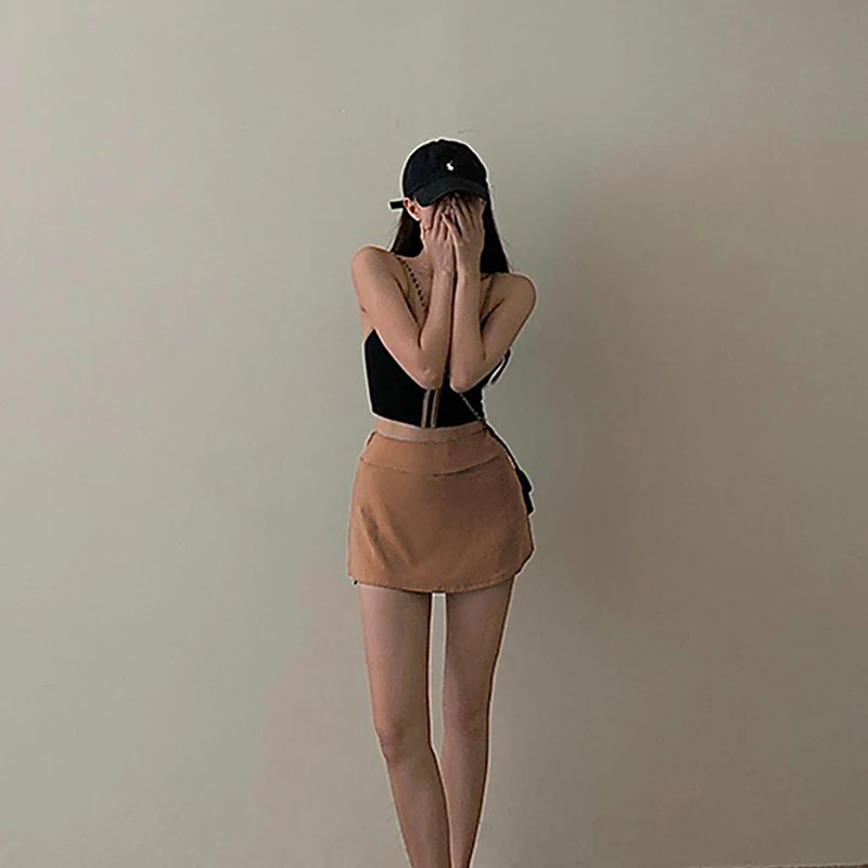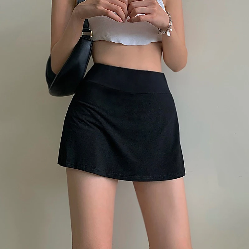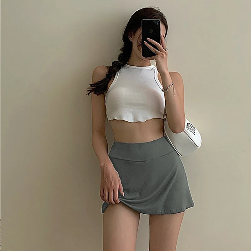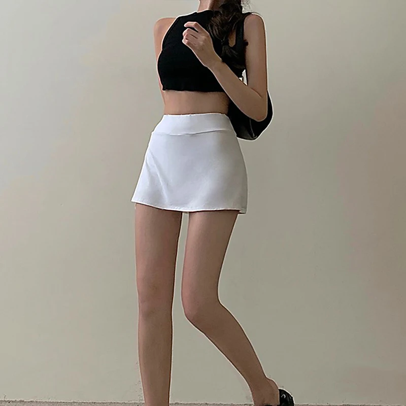 Women'S Tennis Sports Mini Skirt Sexy Babes High Waist Wrap Skirt Mini Skirt Lined Sports Culottes Slit A-Line Skirt 4 Colors