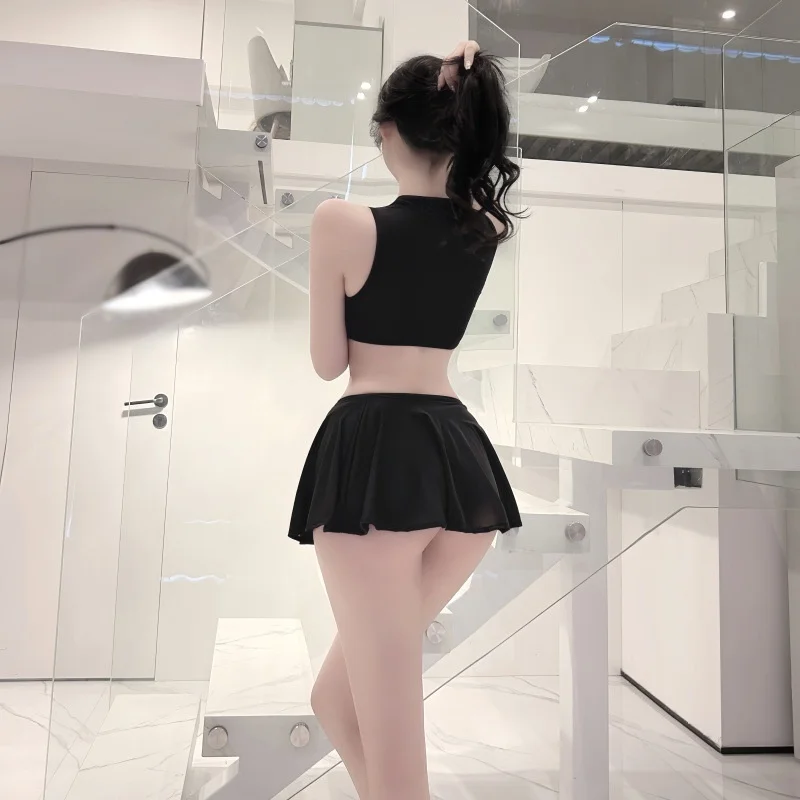 NEWFUNJOIN Sexy Korean Styles Low Waist A-Line Pleated Black Long Skirt for Woman White Night Club Wear Party Mini Short Skirts