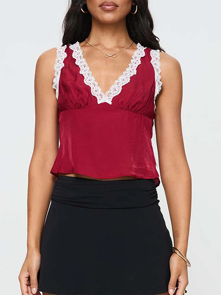 Women s Y2K Lace Going Out Tank Tops Sexy Deep V Neck Backless Floral Top Slim Fit Vest Street Clubwear