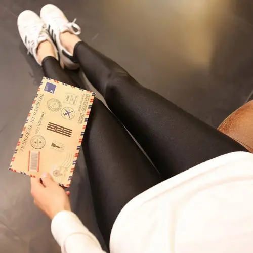 New Fashion Hot sale sexy Shiny Black Thin Leggings Womens High Waist Stretch Skinny Casual Slim Fit Pants plus size