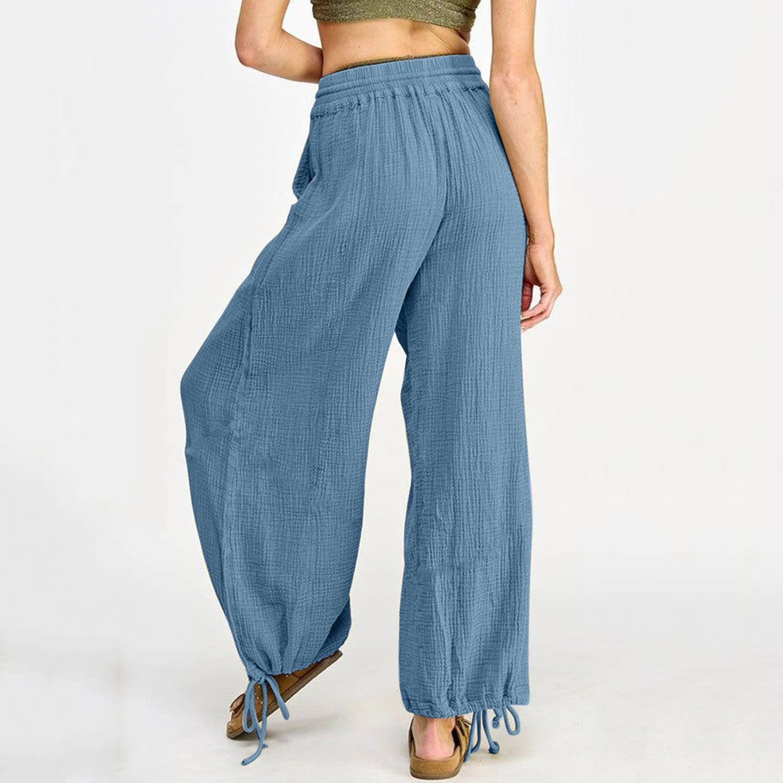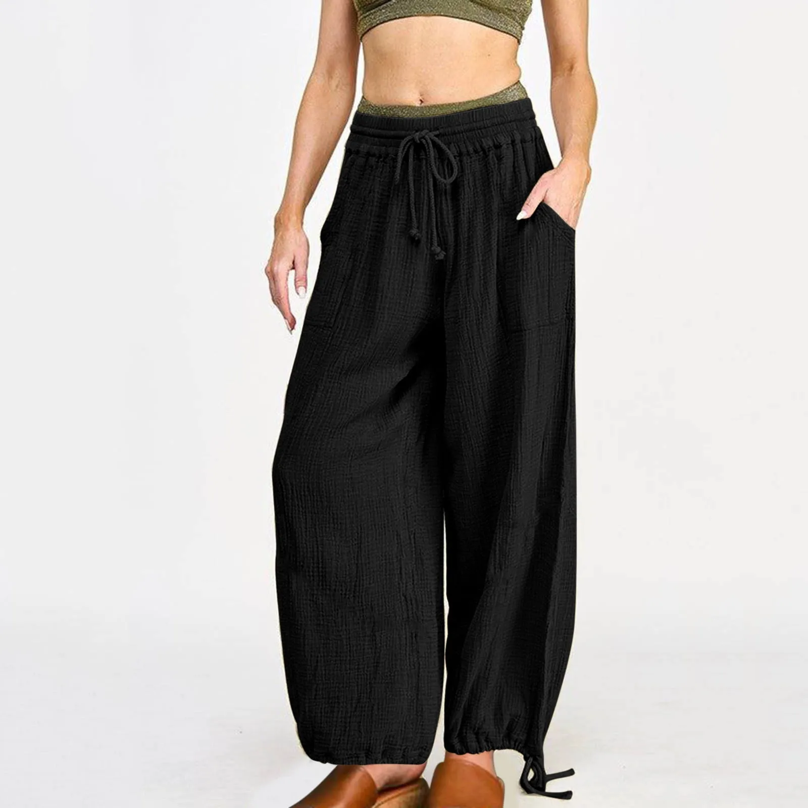 Name | Women's Pants Elastic Waistband Cotton Linen Pockets Oversize Baggy Casual Fashion Bottom Loose Wide-leg Comfortable Trousers |