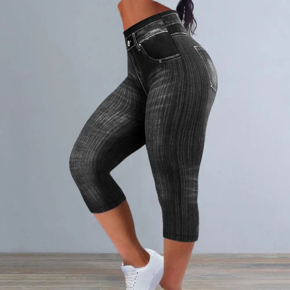 Name | Women Summer Pants High Waist Pants High Waist Butt-lifted Faux Denim Jeans for Women Stretch Fitness Cropped Pants with Fake |