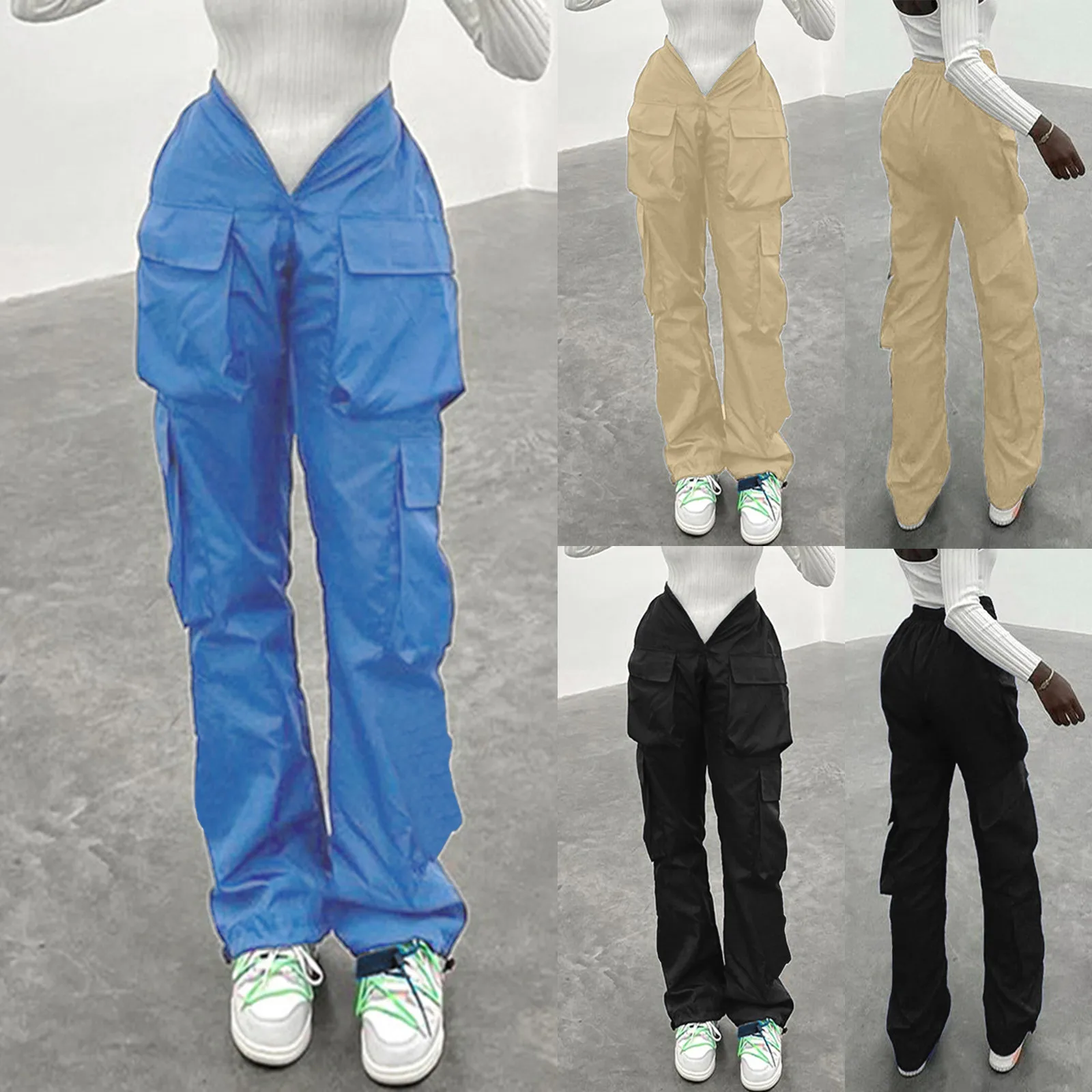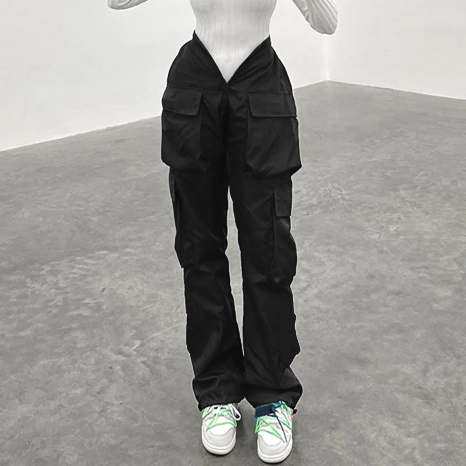 Y2K Women Cargo Pants Vintage Streetwear Baggy Wide Leg Sweatpants Casual Drawstring Oversize Pockets Tech Fashion Trousers