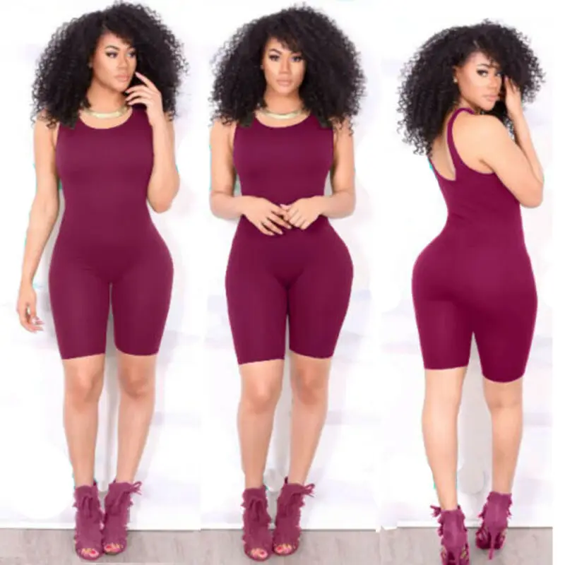 Name | 2022 Sexy Women Yoga Suit Casual Solid Color Sleeveless Bodycon Slim Romper Jumpsuit Club Short Pants |