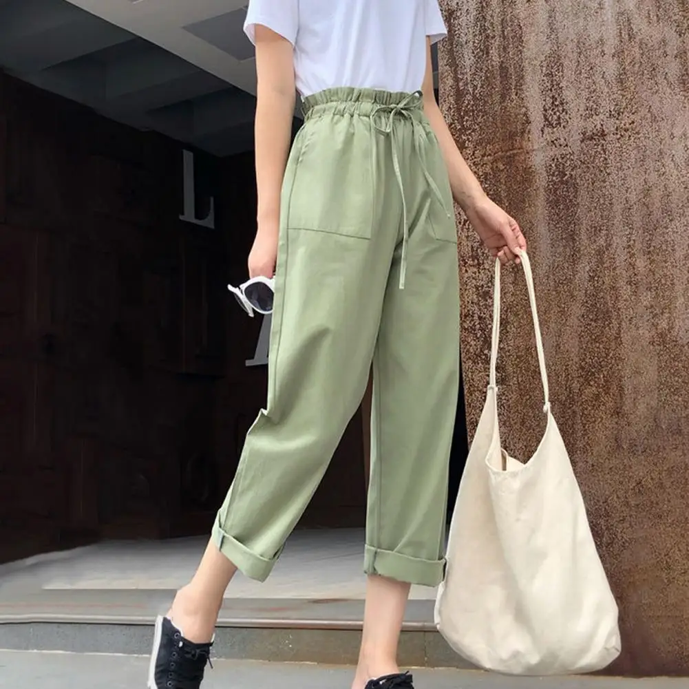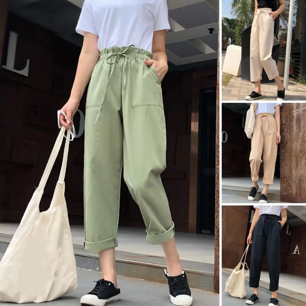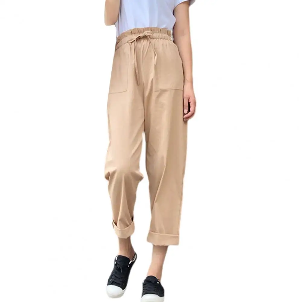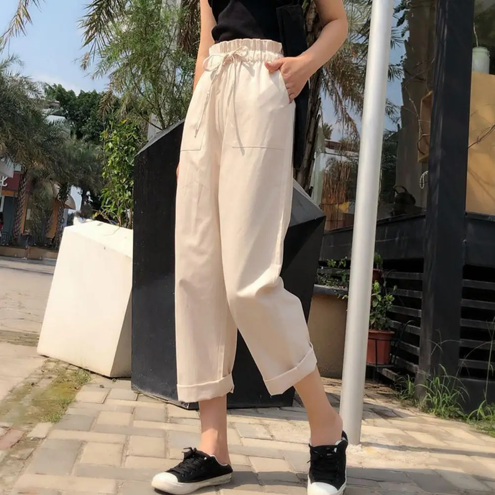 High Waist Loose Fit Trousers Women Wide Leg Pants Stylish Women's Wide Leg Pants with Elastic Waist Pockets for Business Wear