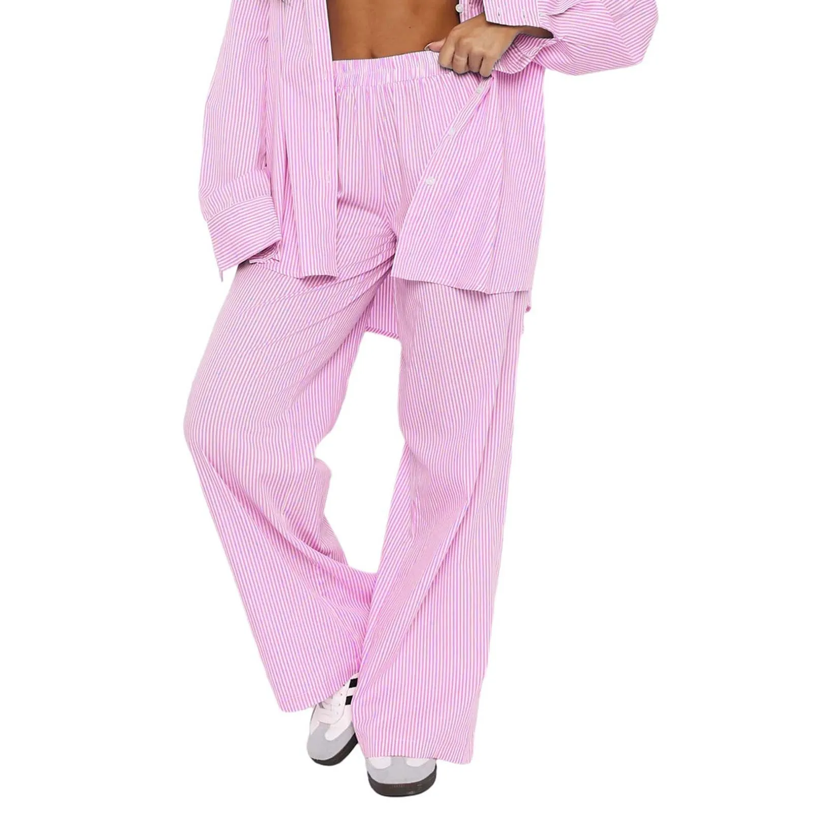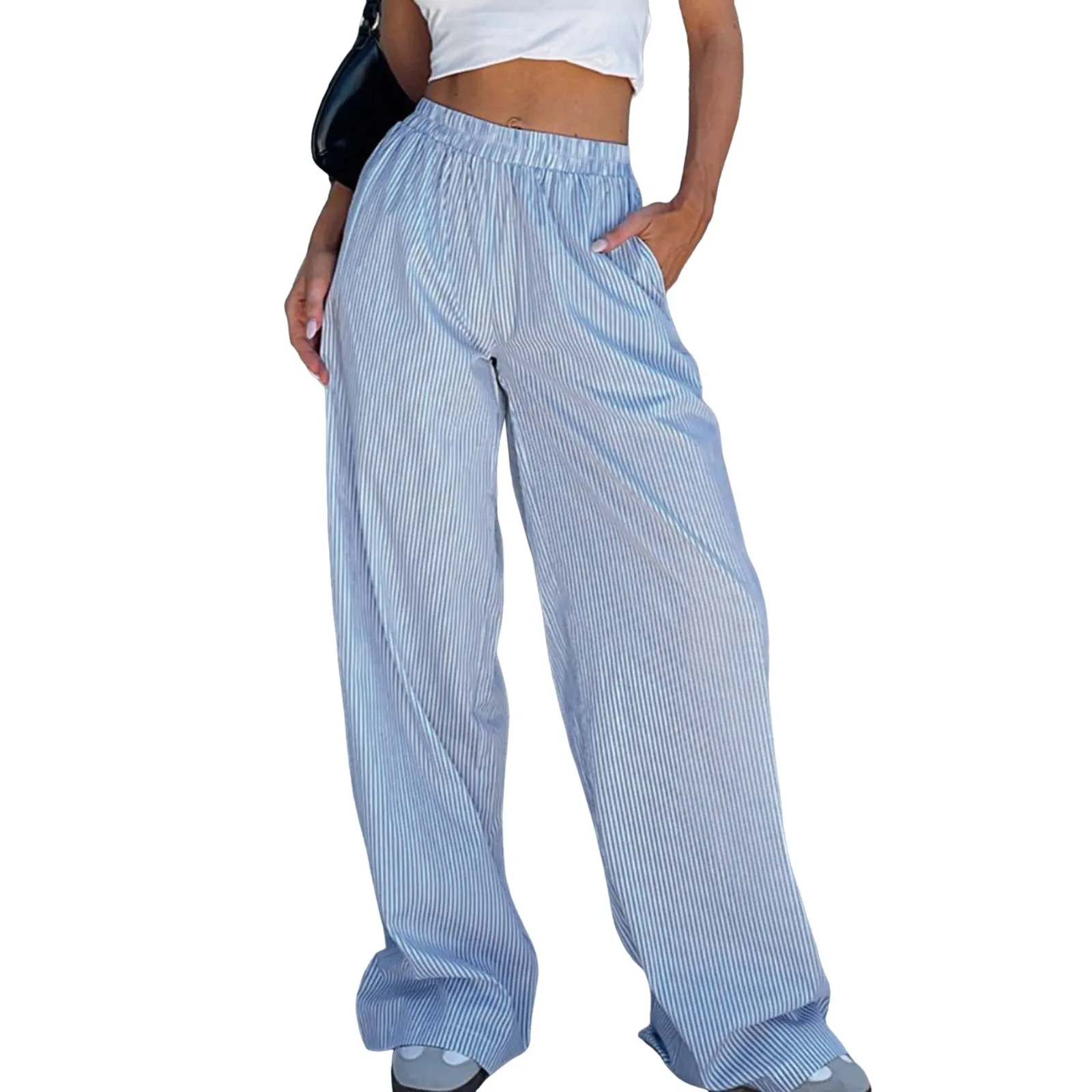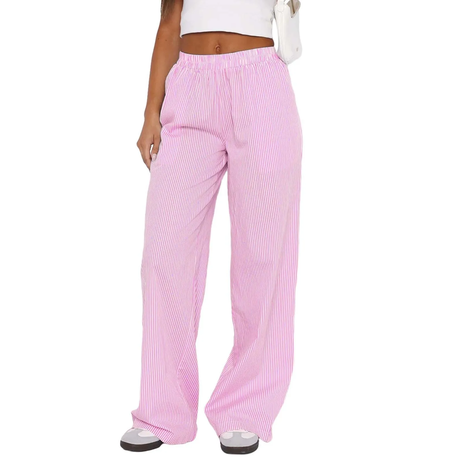 Women's Pants Spring Fall Baggy Casual High Waisted Tie Side Plicated Wide Leg Pants Comfortable Wide Leg Sweatpants 바지 2024