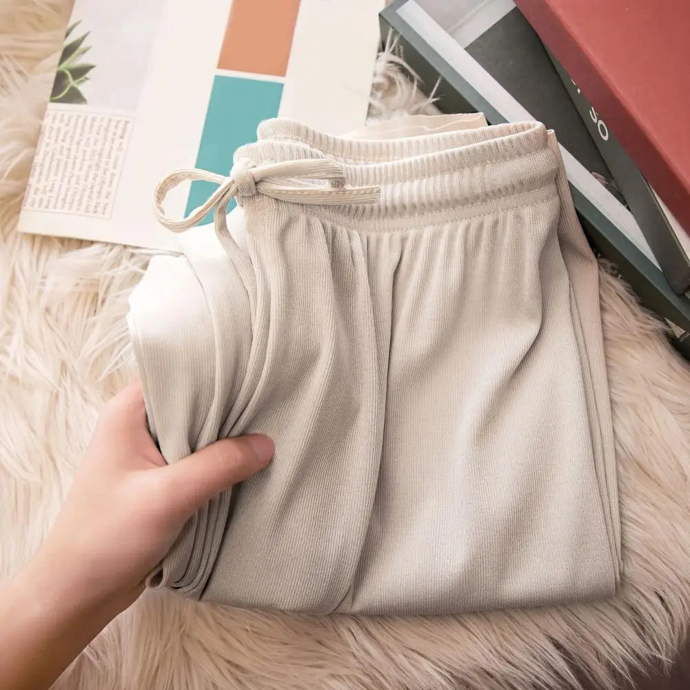 Solid Color Wide-leg Trousers Elegant Draped Wide Leg Pants Adjustable Elastic Waist Ice Silk Comfort Streetwear for Women Touch