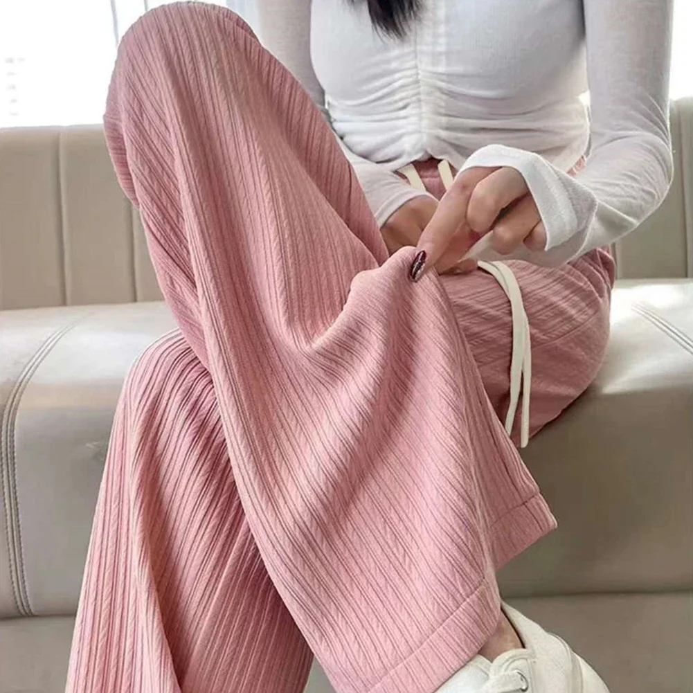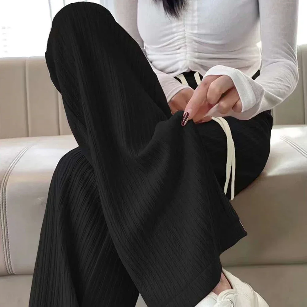 Name | Summer Thin Casual Pants Women Oversize Draped Drawstring Wide Legs Pants High Waist Solid Long Pleated Loose Trousers |