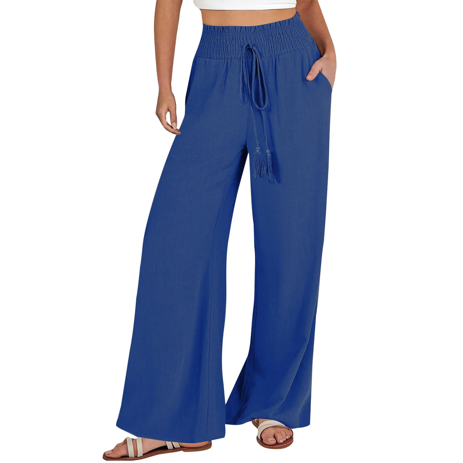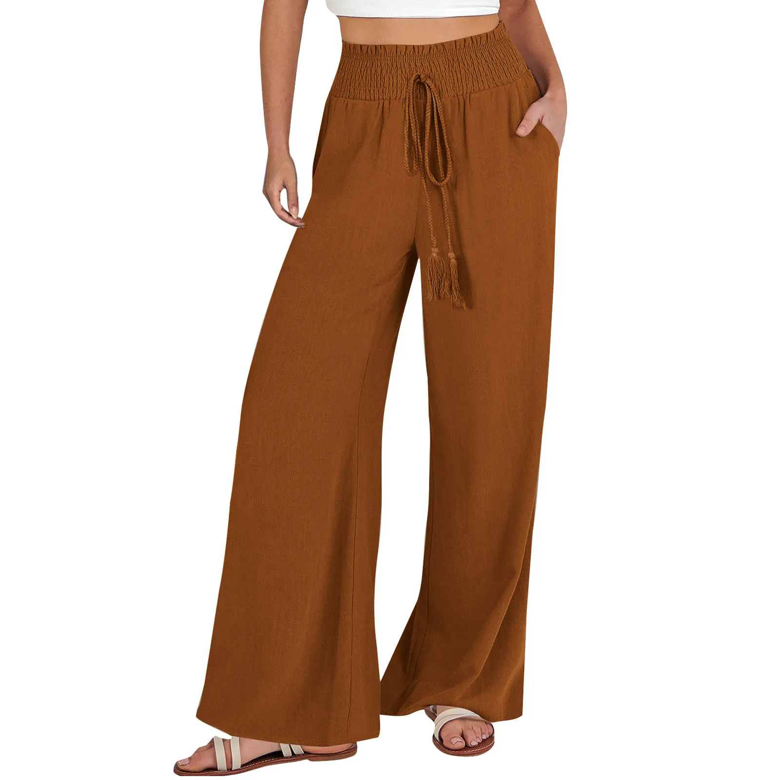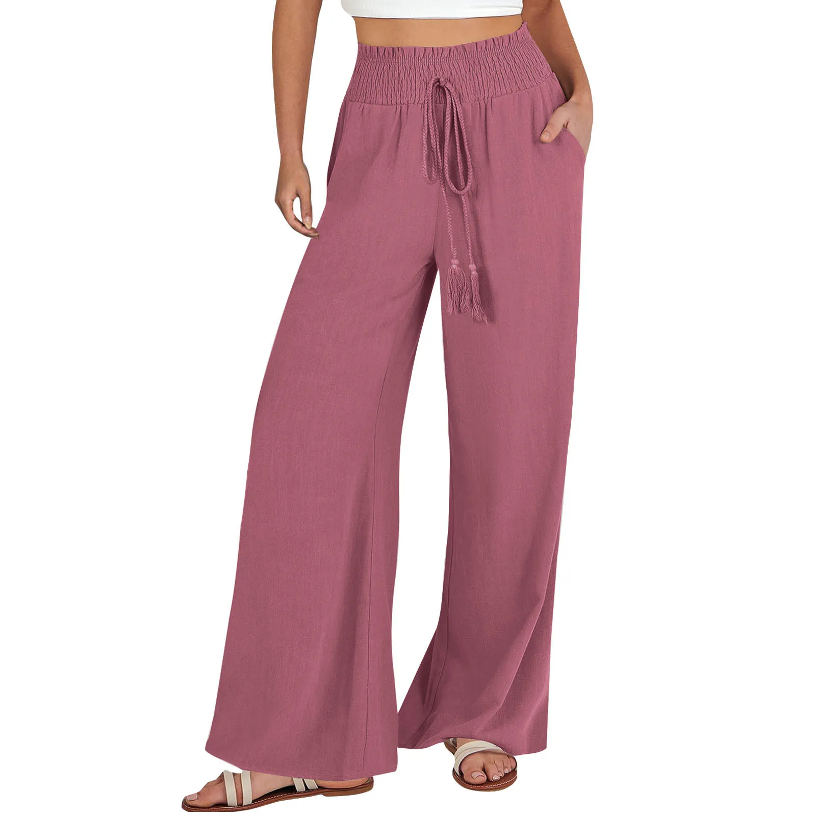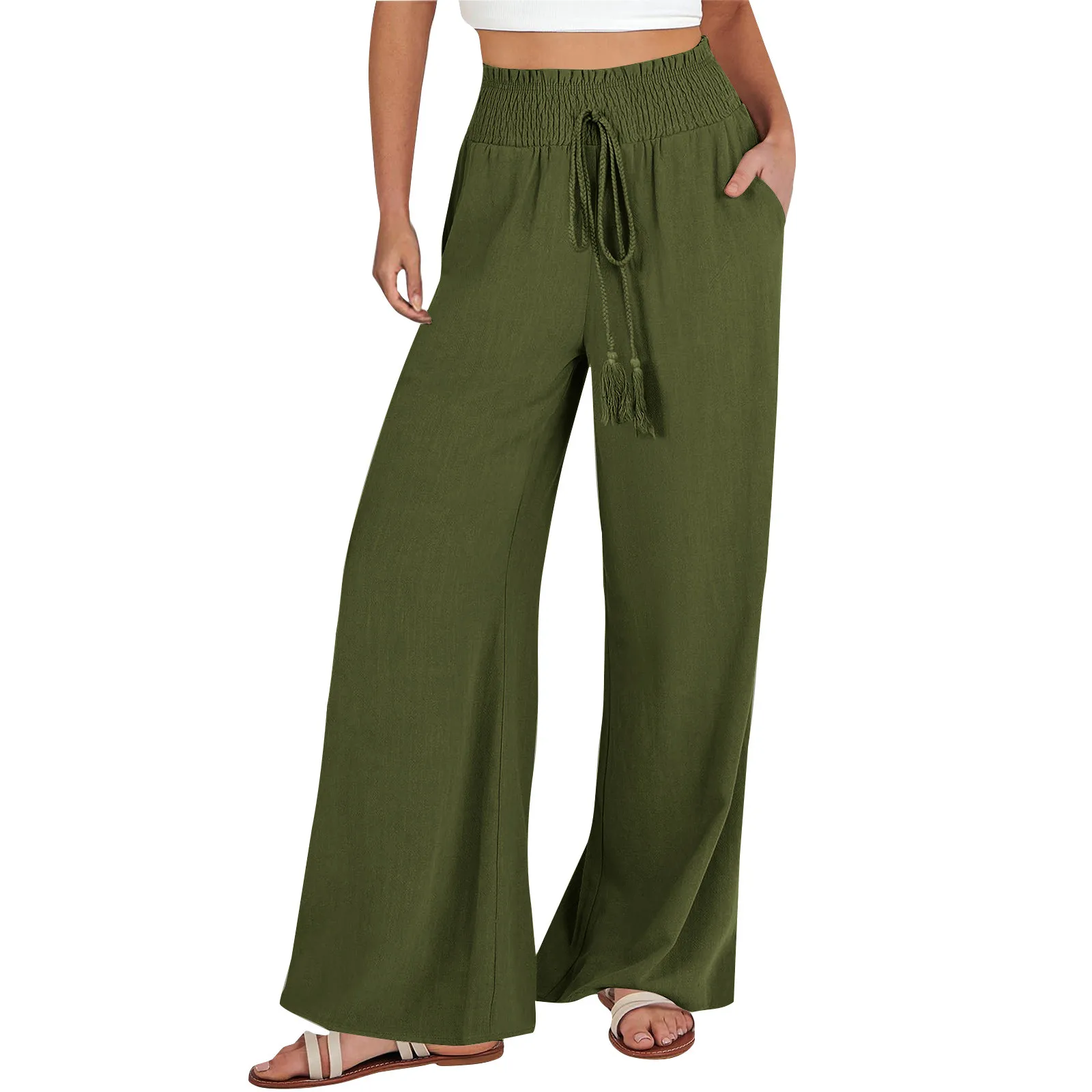 Name | Women Classic Casual Pants Spring Plus Size Solid Wide Legged Trouser Ladies Breathable Linen Pants Solid Loose Pants For Autumn |