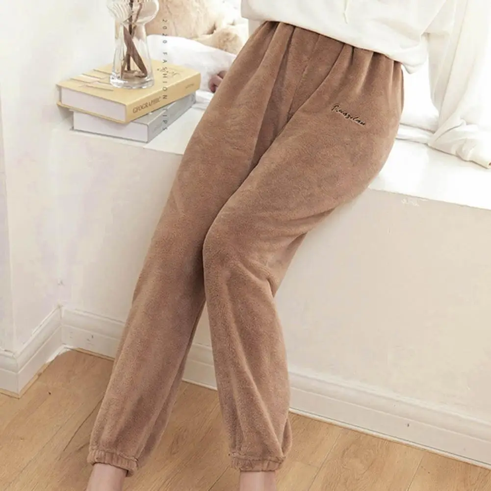 Coral Velvet Pants Warm Cozy Women's Winter Pants Thick Coral Fleece Loose Fit Elastic Waist for Homewear Pajamas Soft Women