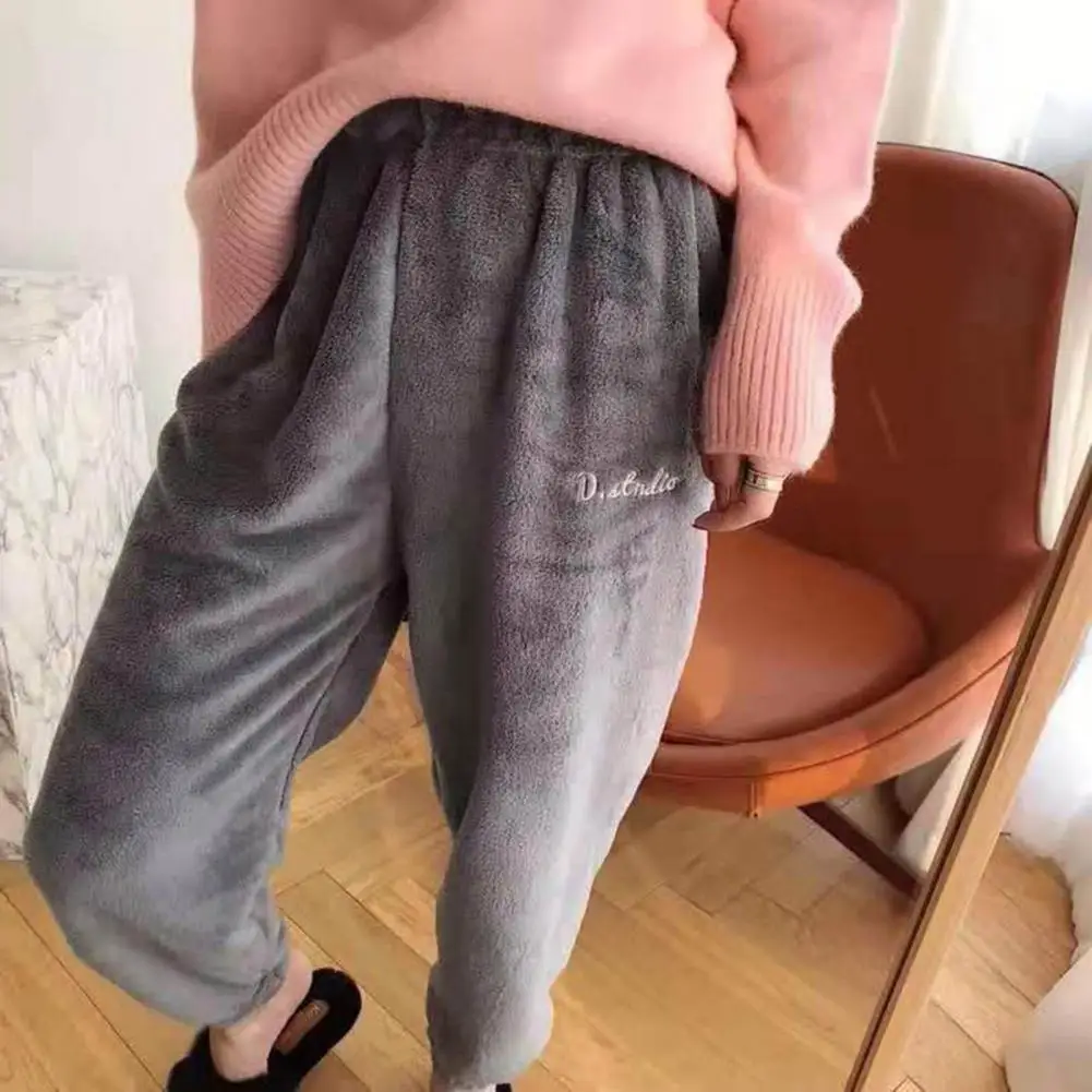 Women Smooth Velvet Pants Warm Cozy Women's Winter Pants Thick Coral Fleece Loose Fit Elastic Waist for Homewear Pajamas Soft