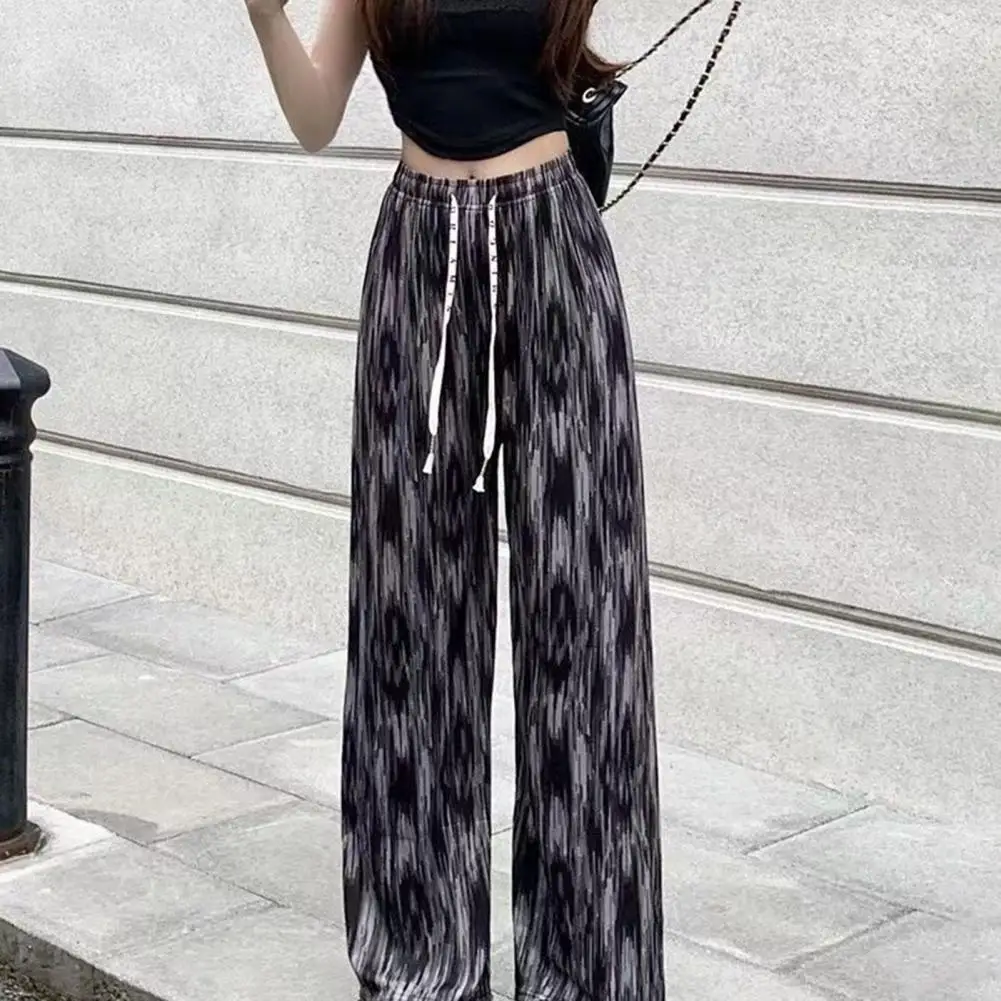 Women Casual Trousers Stylish Women's Wide Leg Pants Ink Tie Dye Print Elastic Waist Pockets for Casual Wear Hiking or Vacation