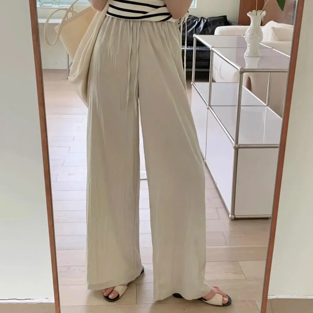 Summer Wide Leg Trousers Stylish Women's Elastic High Waist Drawstring Pants in Solid Colors Comfortable for Casual for All-day