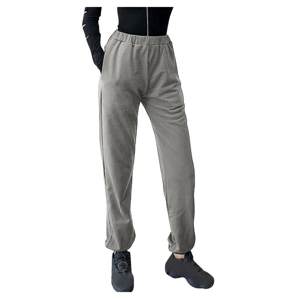 Name | Fashion Ladies Casual Pants Solid Color Comfortable Sports Trousers With Pockets Elastic High Waist Loose Pants For Women |