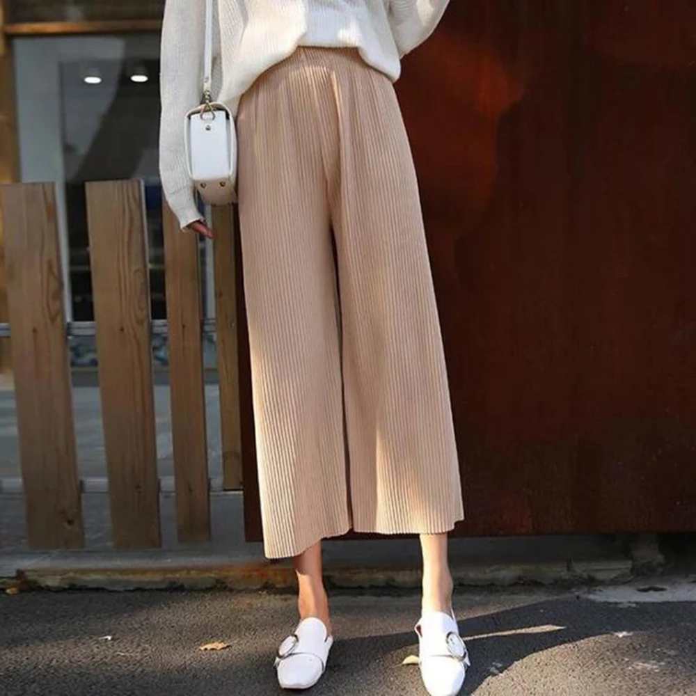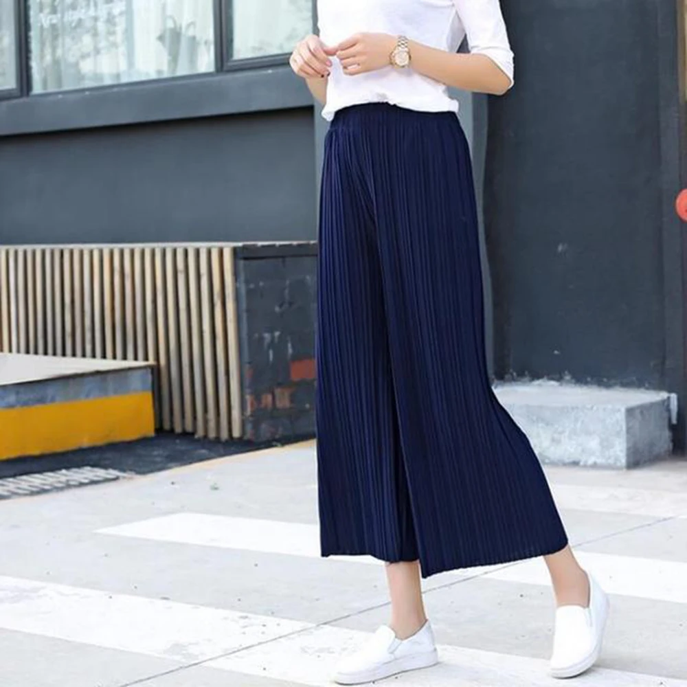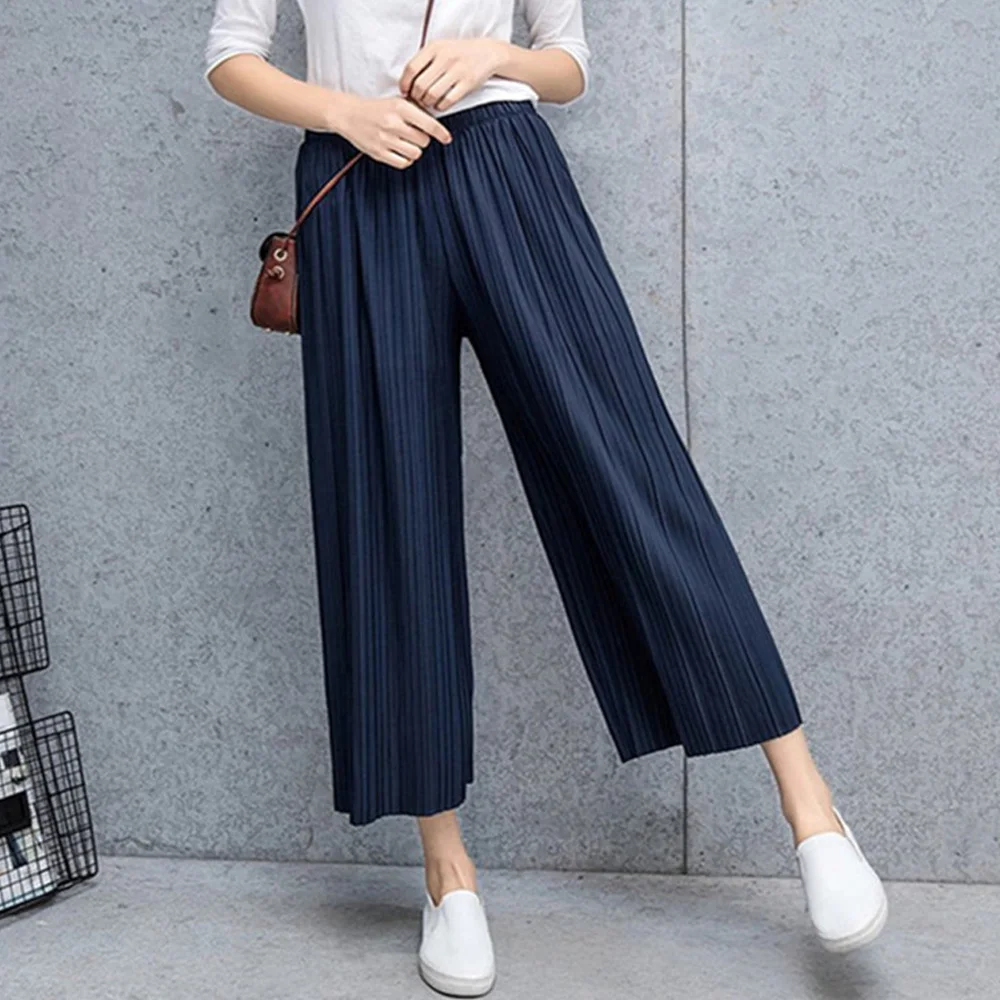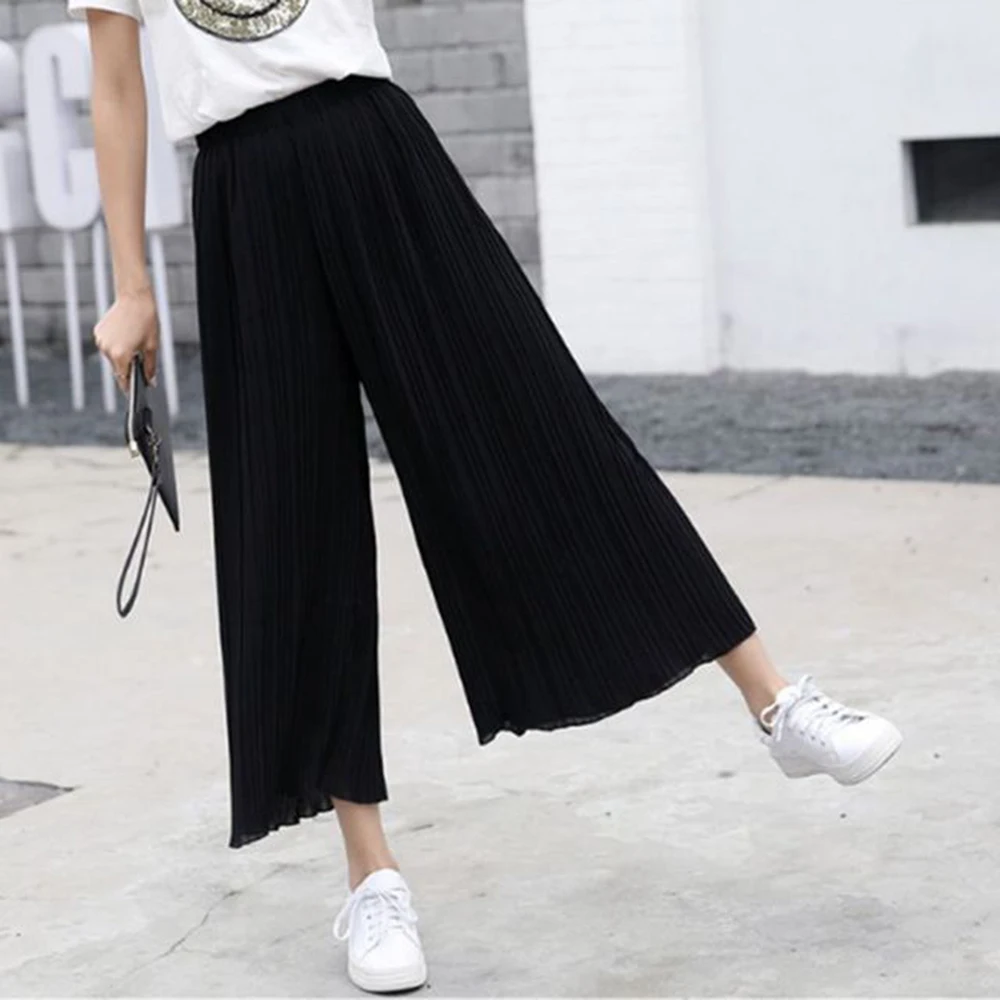 Women's pleated wide leg pants summer high waisted loose fit large size chiffon casual comfortable versatile pants capris