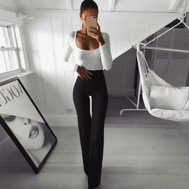 Name | Fashion Trend Solid Elegant Female Lady Women's Palazzo Flared Wide Killer Legs Pants High Waist OL Ladies Career Long Trousers |