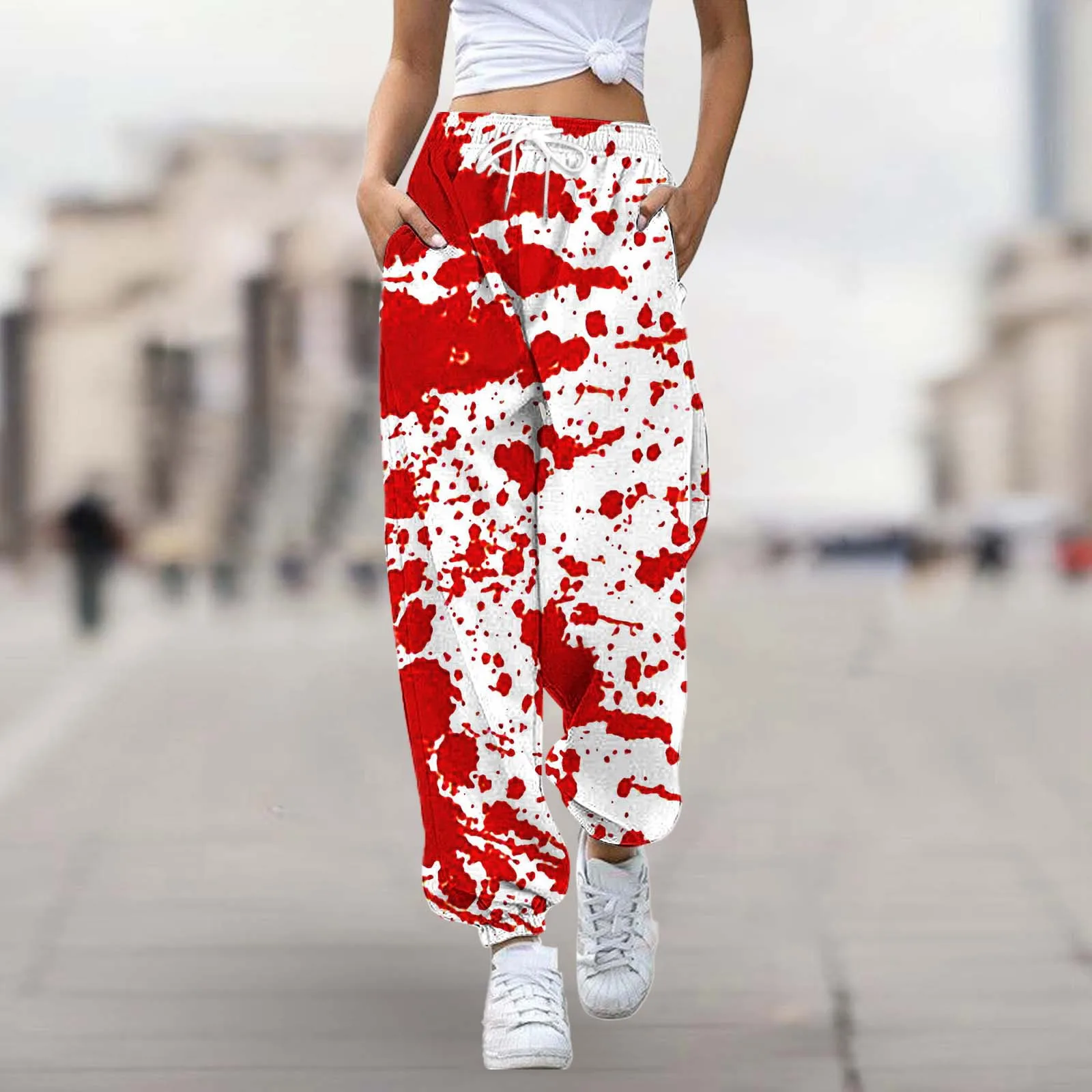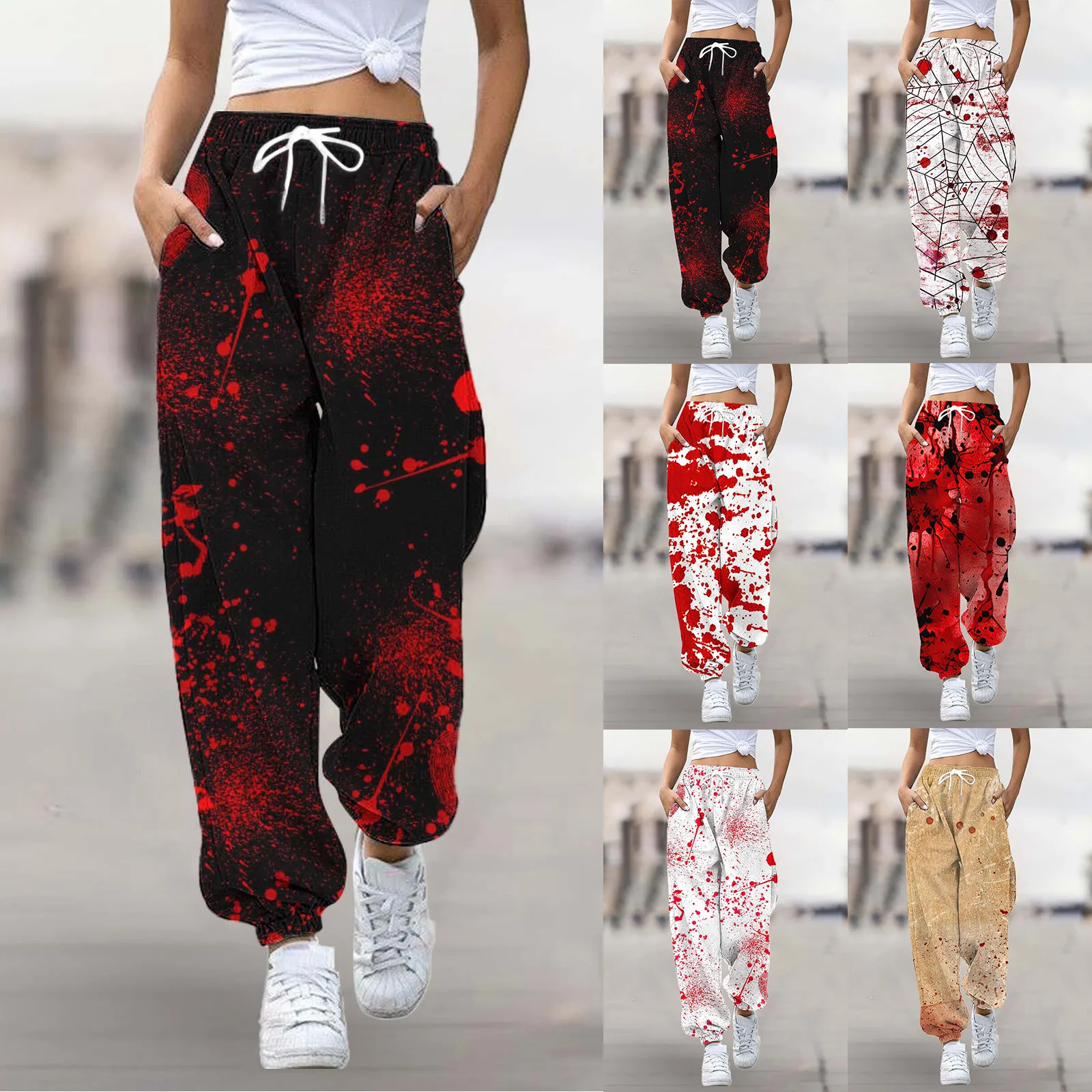 Name | Women Halloween Printed Pant 2024 New Drawstring Pockets High Waist Elastic Lace Up Athletic And Casual Sweatpants |