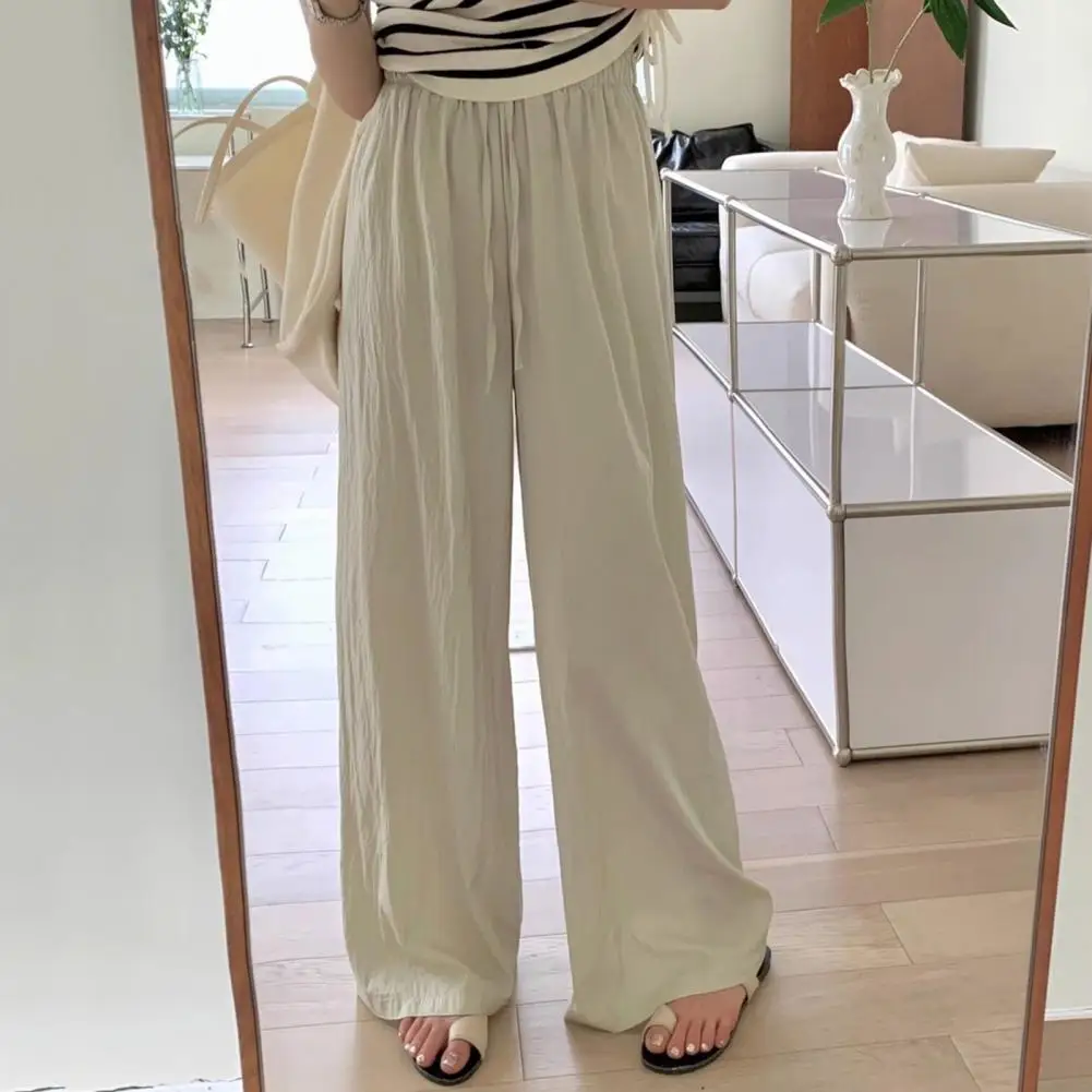 Women High Waist Wide Leg Pants Elastic High Waist Women's Casual Pants Adjustable Drawstring Trousers Solid Color for Comfort