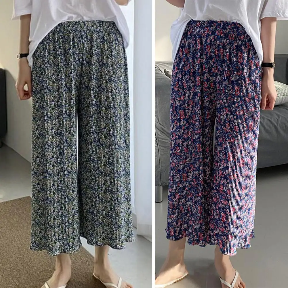 Comfortable Loose-fit Trousers Women Slacks Floral Printed Wide Leg Trousers for Women Elastic High Waist Lounge Pants