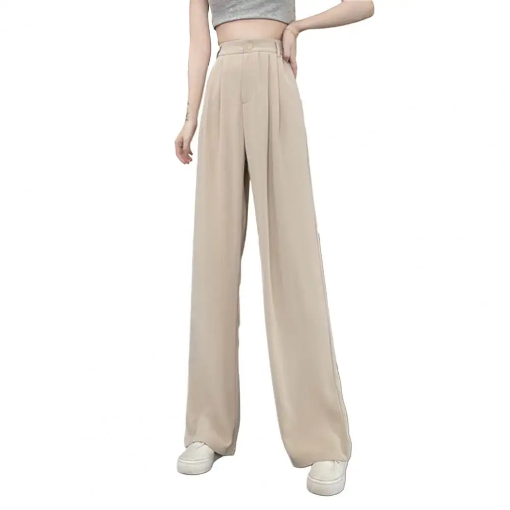 Loose Women Suit Pants Business Casual Elastic High Waist Straight Wide Leg Pants Slant Pockets Office Trousers