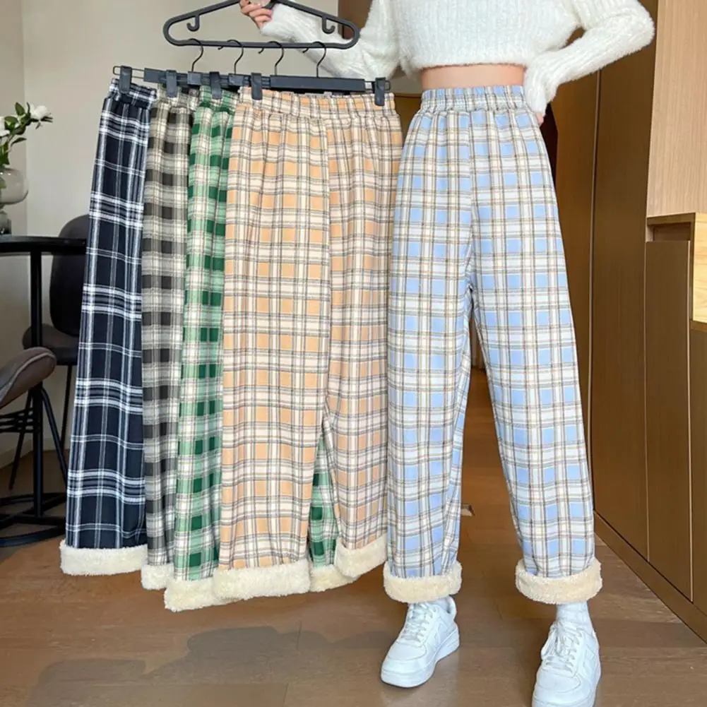 Name | Women Winter Pants Vintage Plaid Pants Thicken Plush High Waist Warm Full Length Soft Elastic Waist Lady Winter Trousers Hot |