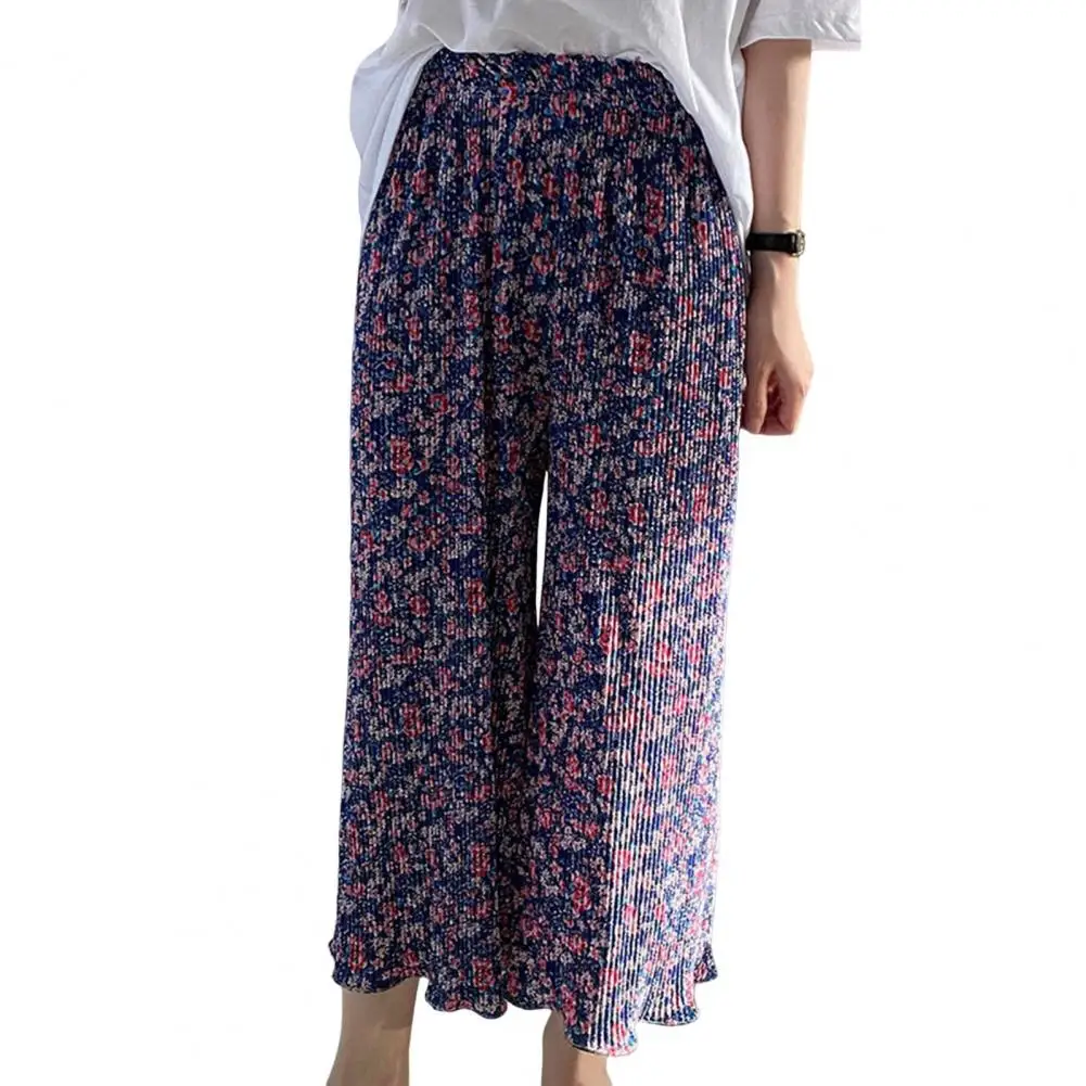 Women Commuting Pants Floral Printed Wide Leg Trousers for Women Elastic High Waist Lounge Pants with Draped for Commuting