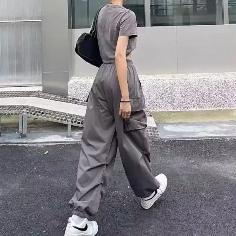 Female Wide Leg Pant Multi-pocket Sweatpants Cargo Pant for Women Korea Style Simple Women Trousers Solid High Waist Slim Summer