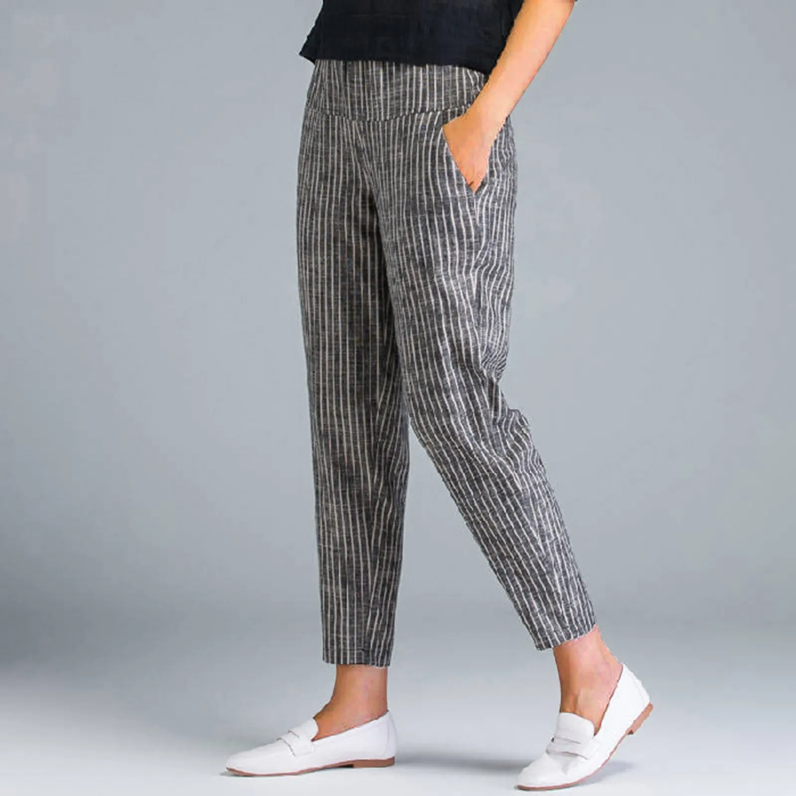 Name | Women'S New Cotton Hemp Harlan Pants Vertical Stripes Simple Thin Nine-Point Pants Slim Radish Pants Classic All Match pants |