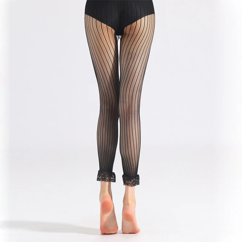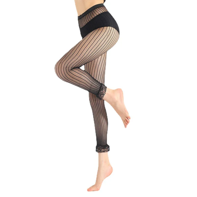 Name | Fashion Personality Women's Hollow Out Stockings Trousers Thin Fine Mesh Lace Decoration Vertical Straight Elastic Nylon Pants |