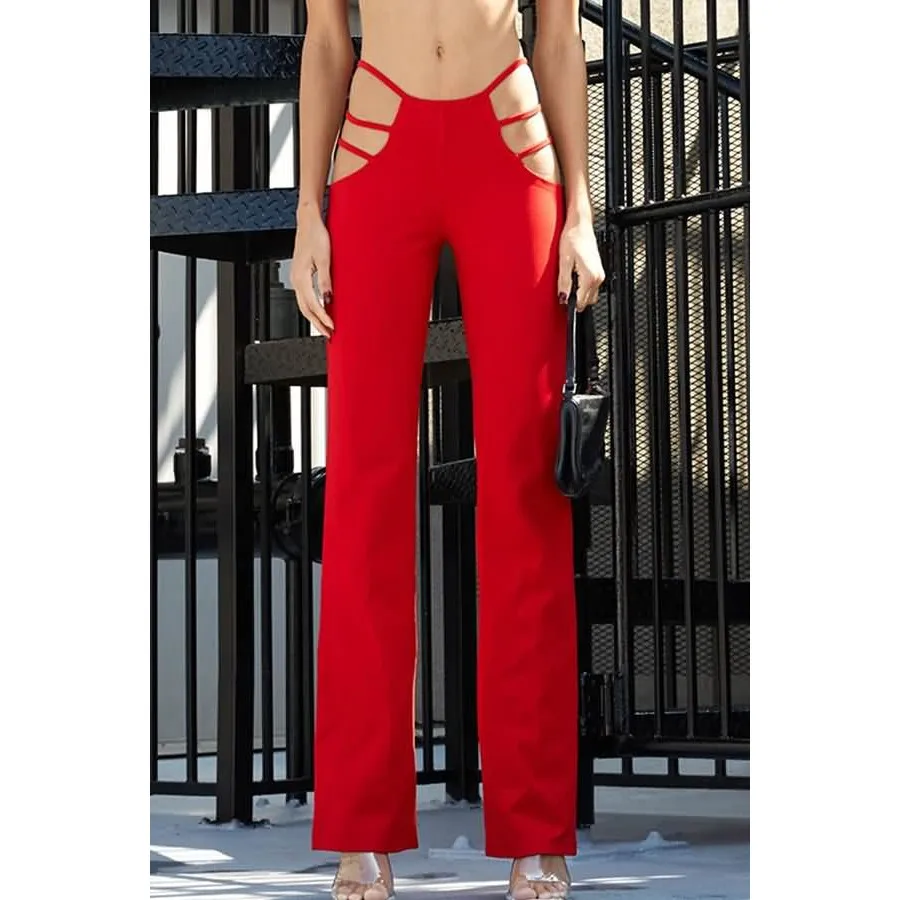 Name | Retro Women Sexy Hollow Out Low Waist Flare Pants Ladies Fashion Solid Color Trousers Club Streetwear Stretch Trousers Long Pant |