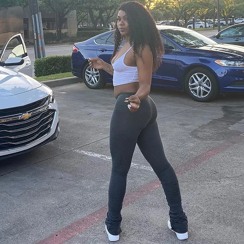 Y2K Pants Streetwear Women Legging Fashion Solid Ruched Stacked High Waist Sweatpants Casual Trousers Pencil Pants Jogging