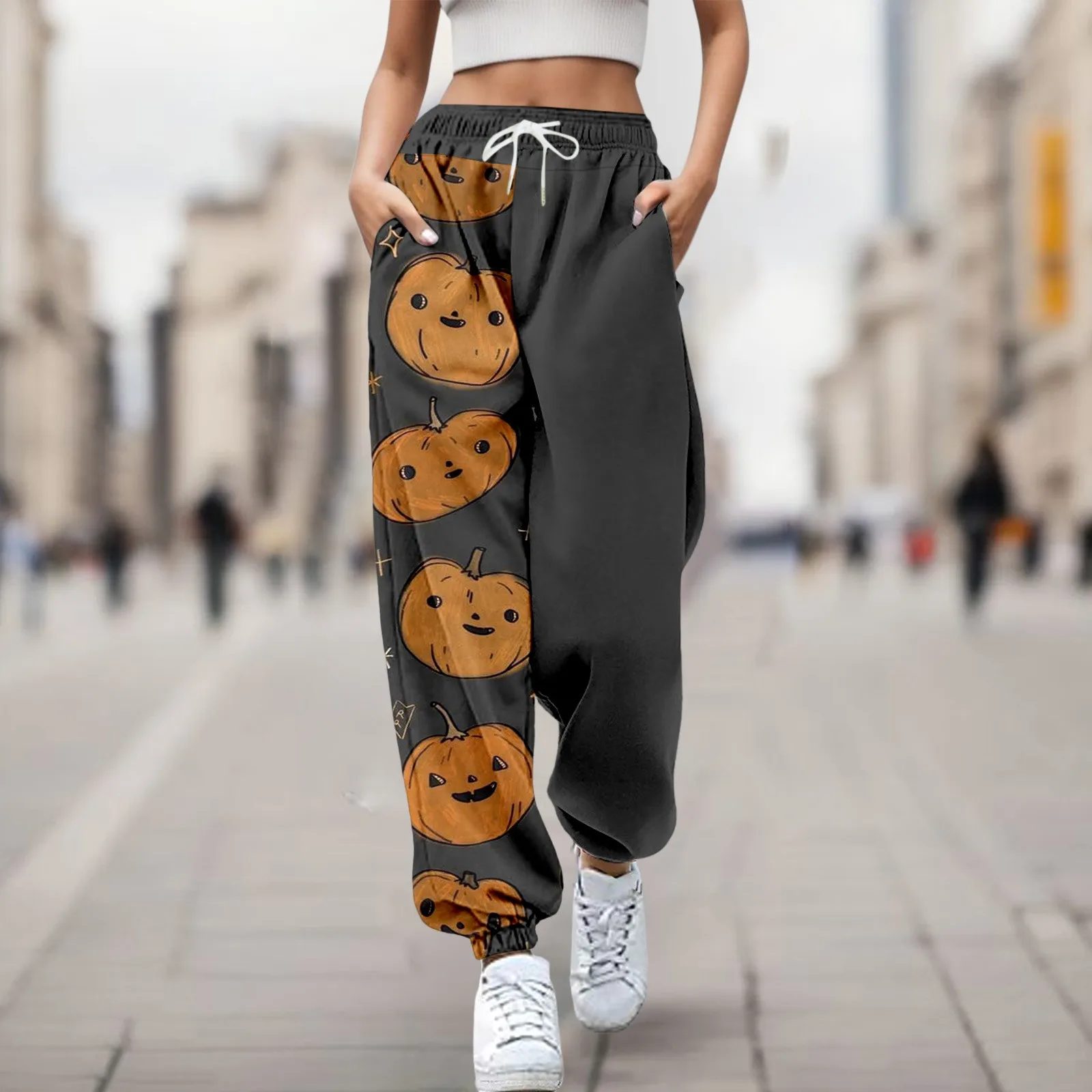 Name | Women Fashion Trousers cute Pumpkin Print Halloween Suitable Bottom Sweatpants Pockets High Waist Sporty Gym Athletic Fit Jogger |