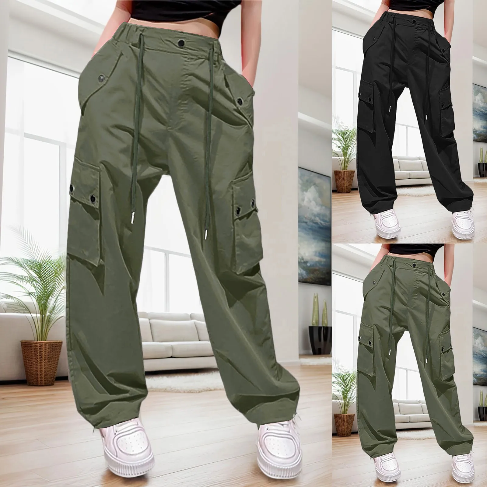Name | 2024 New Women's Cargo Pants Loose High Waist Straight Leg Trousers With Pockets Wide-leg Streetwear Quick-drying Sweatpants |