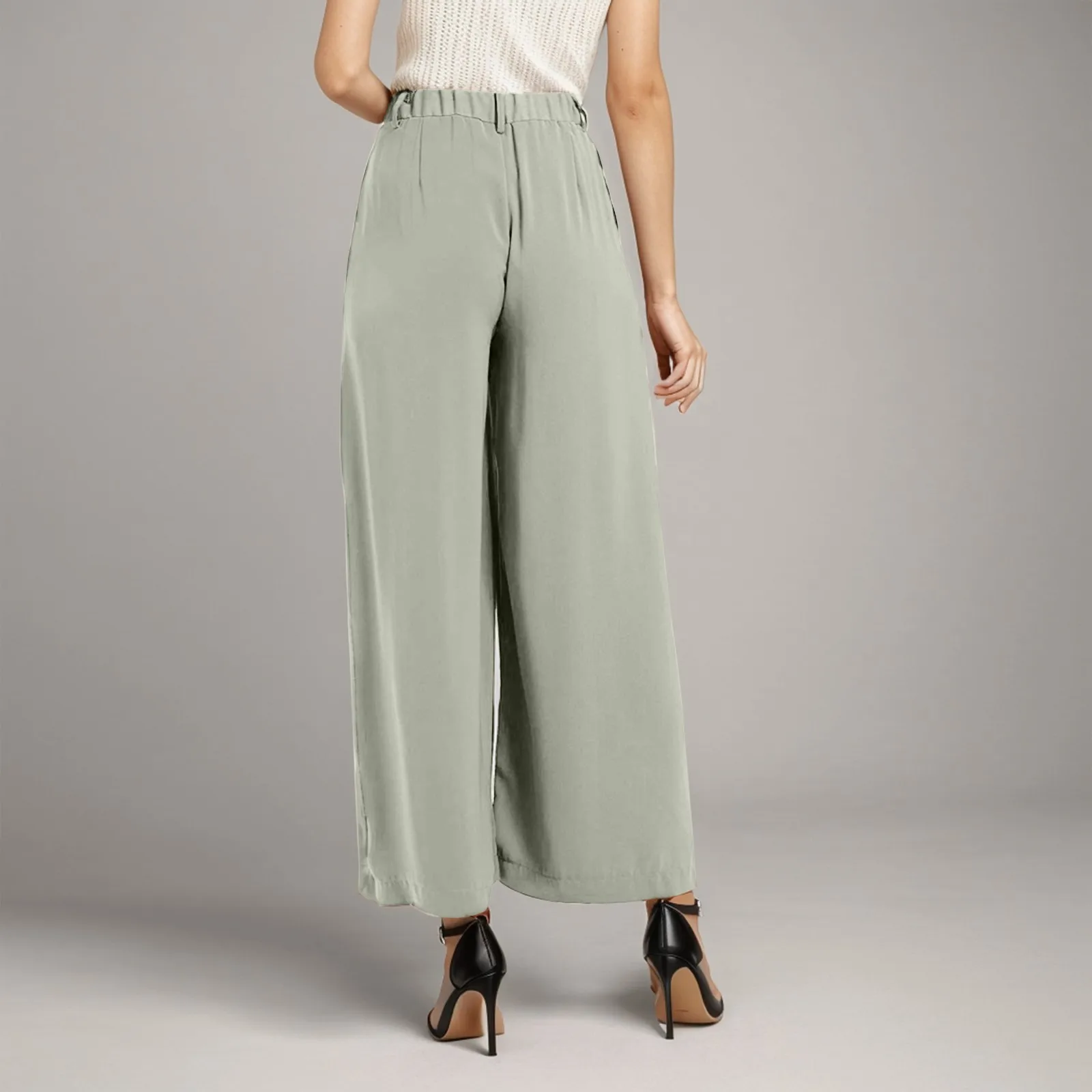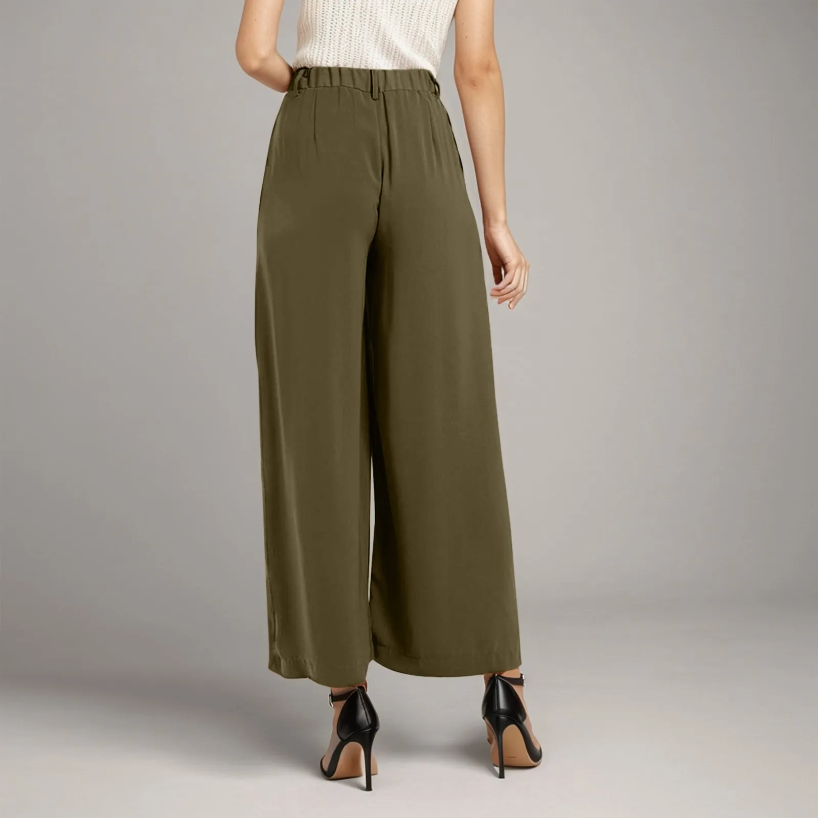 Women High Waist Casual Wide Leg Long Palazzo Pants Trousers Regular Size Solid Elegant Business Office Fashion Pants Trousers