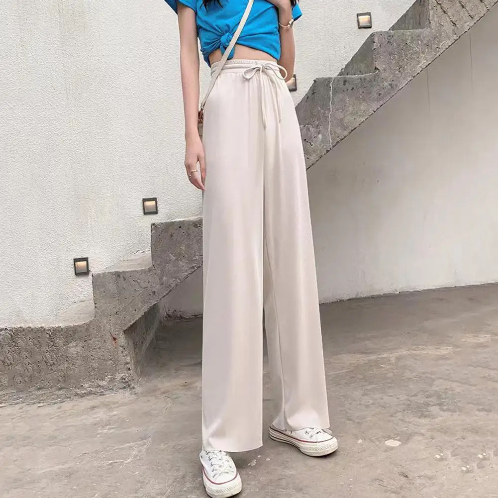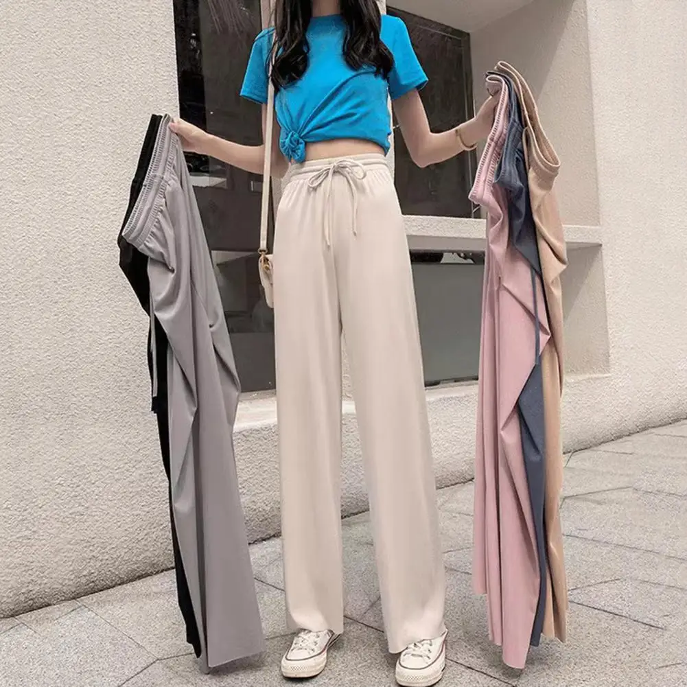 Charming Casual Bottoms Elastic Drawstring Waist Women's Summer Pants Solid Color Straight Wide Leg Trousers for Streetwear