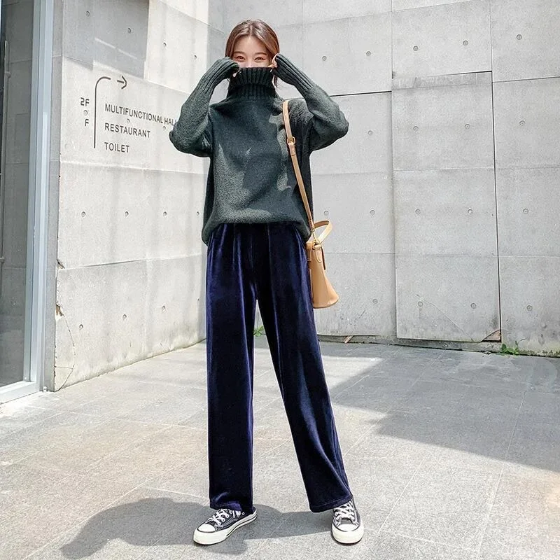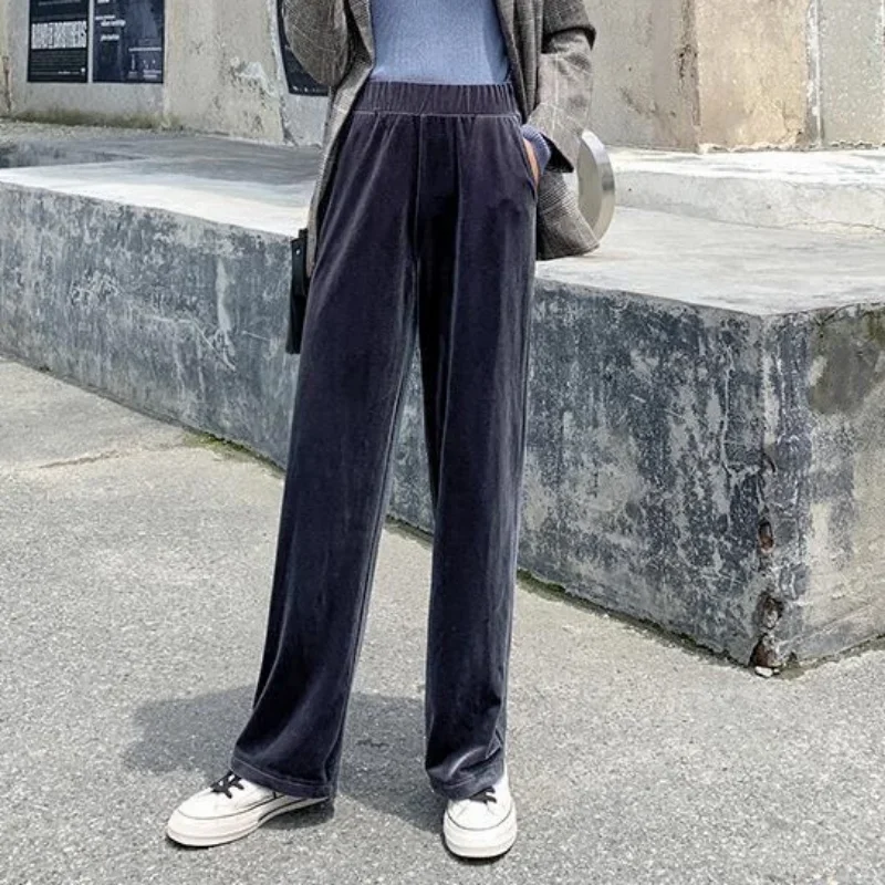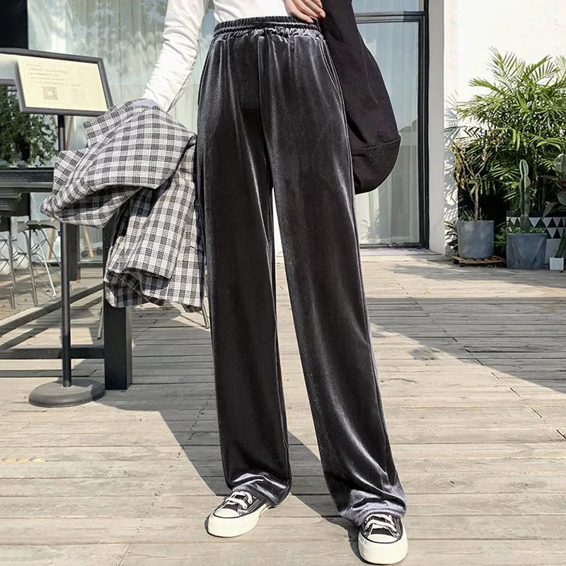 Name | Velvet Casual Pants Women Loose High Waist Soft Straight Elegant All-match Korean Style Slim Spring Female Mature Ins Cozy |