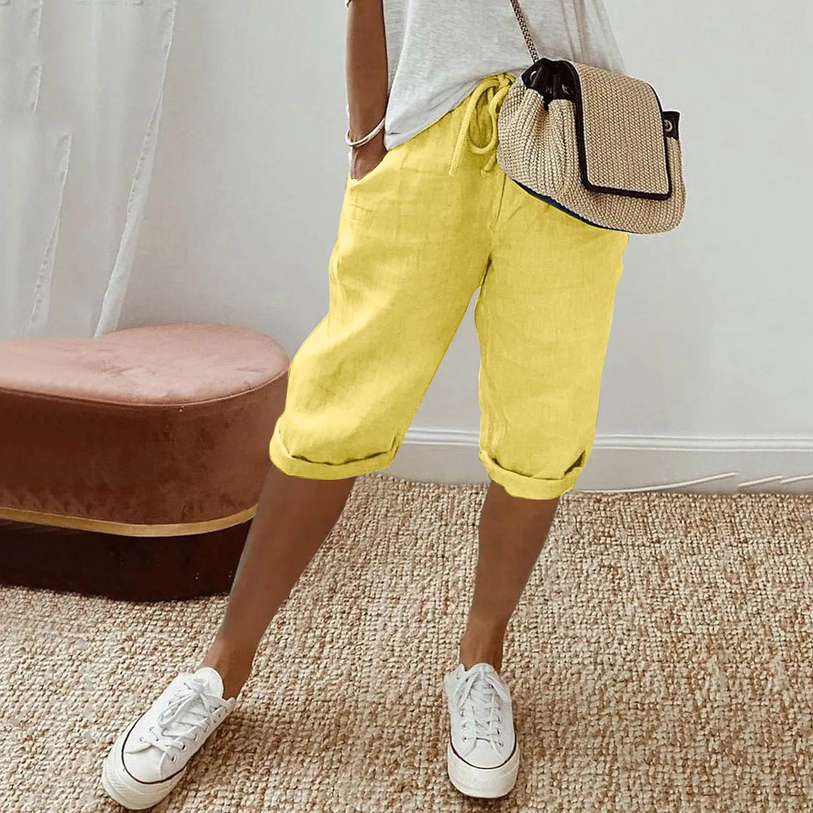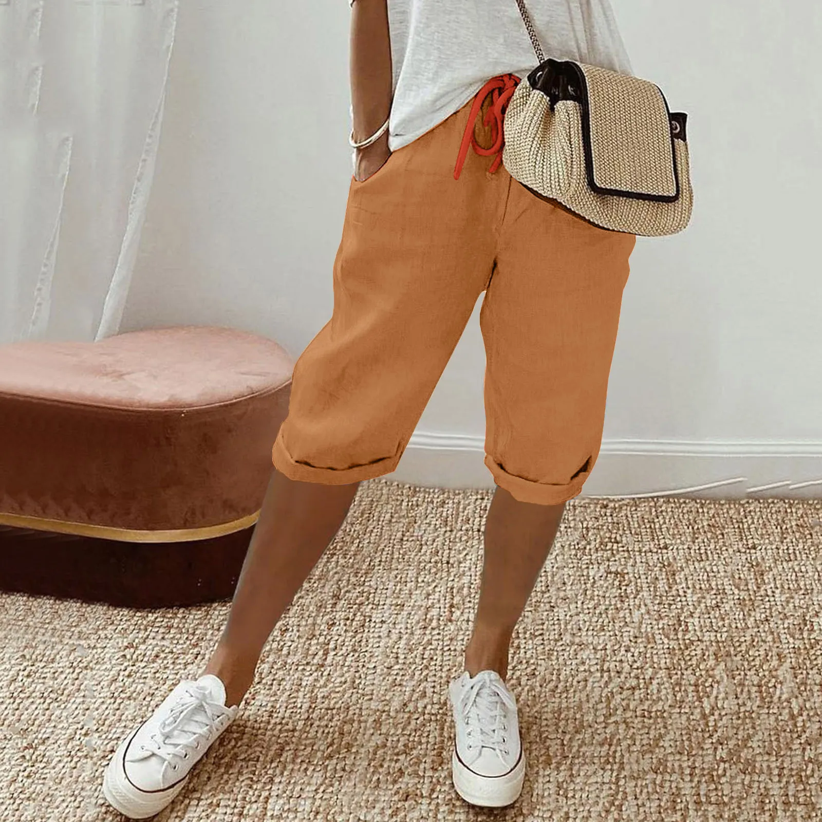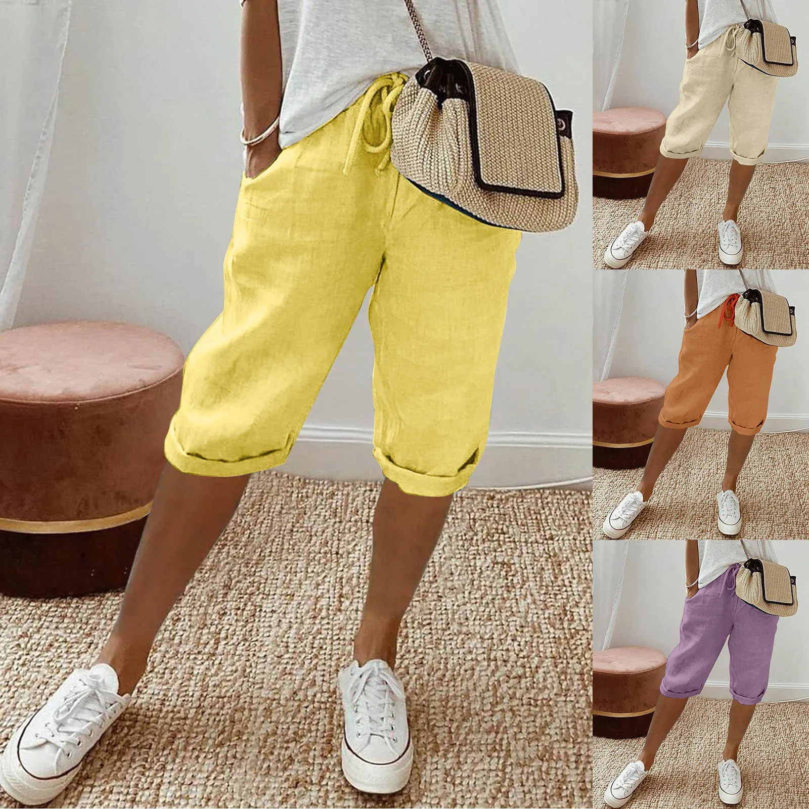 Name | Cotton and Linen Laides Trouser Women's Fashion Solid Color Large Pocket Capris Pant Drawstring Elastic Waist Loose Casual Pants |