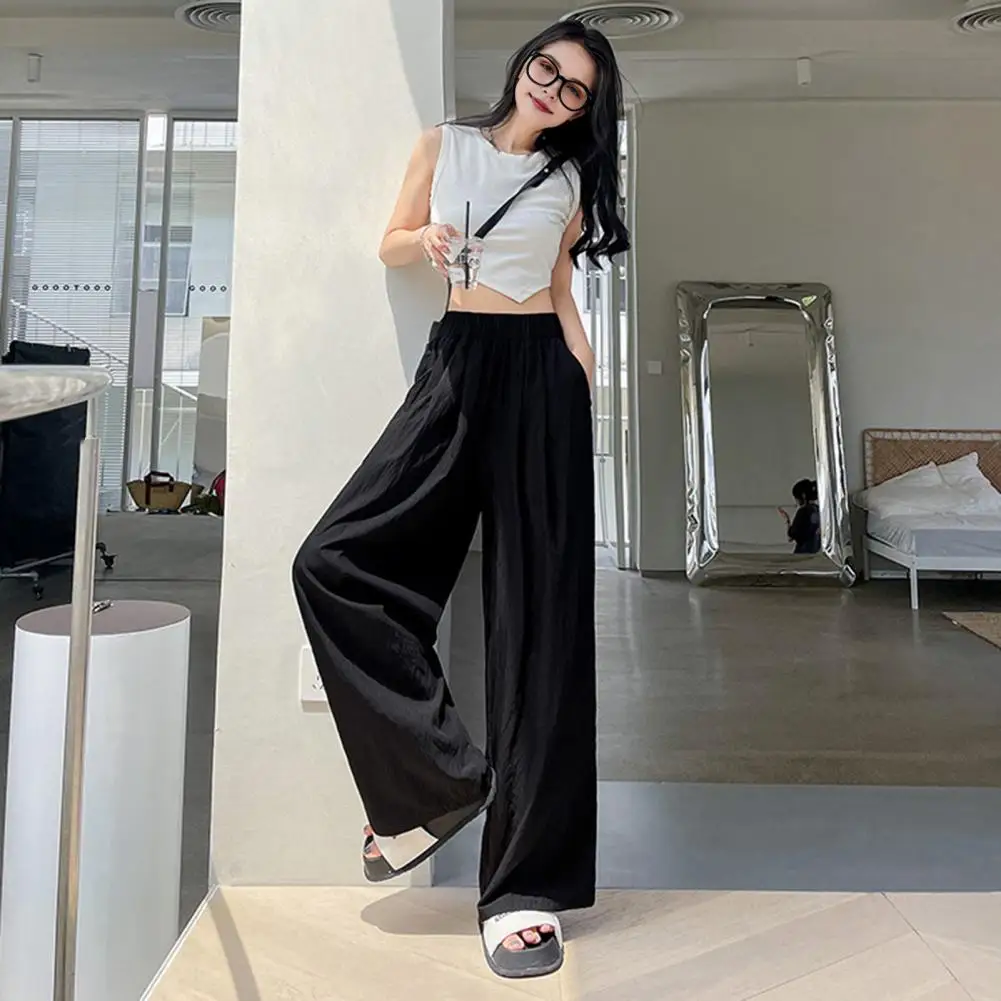 Pleated Style Pants Elegant Wide Leg Pleated Trousers for Women High Waist Solid Color Pants for Work Leisure Women Sports Pants