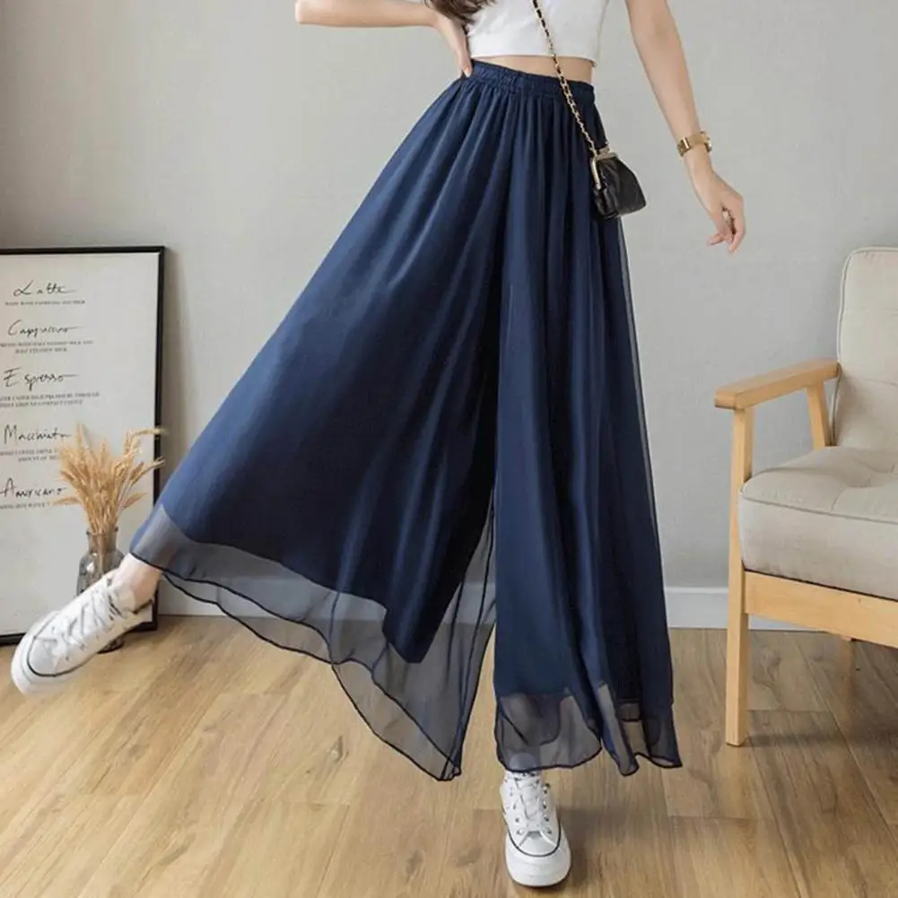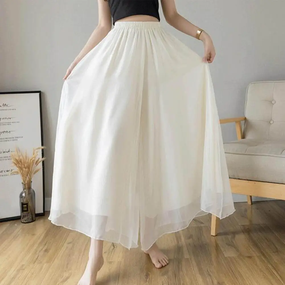 Name | Summer Women Skirt Pants Mesh Gauze Double-Layer Design Elastic Waist Chiffon Long Pants Solid Color Pants |