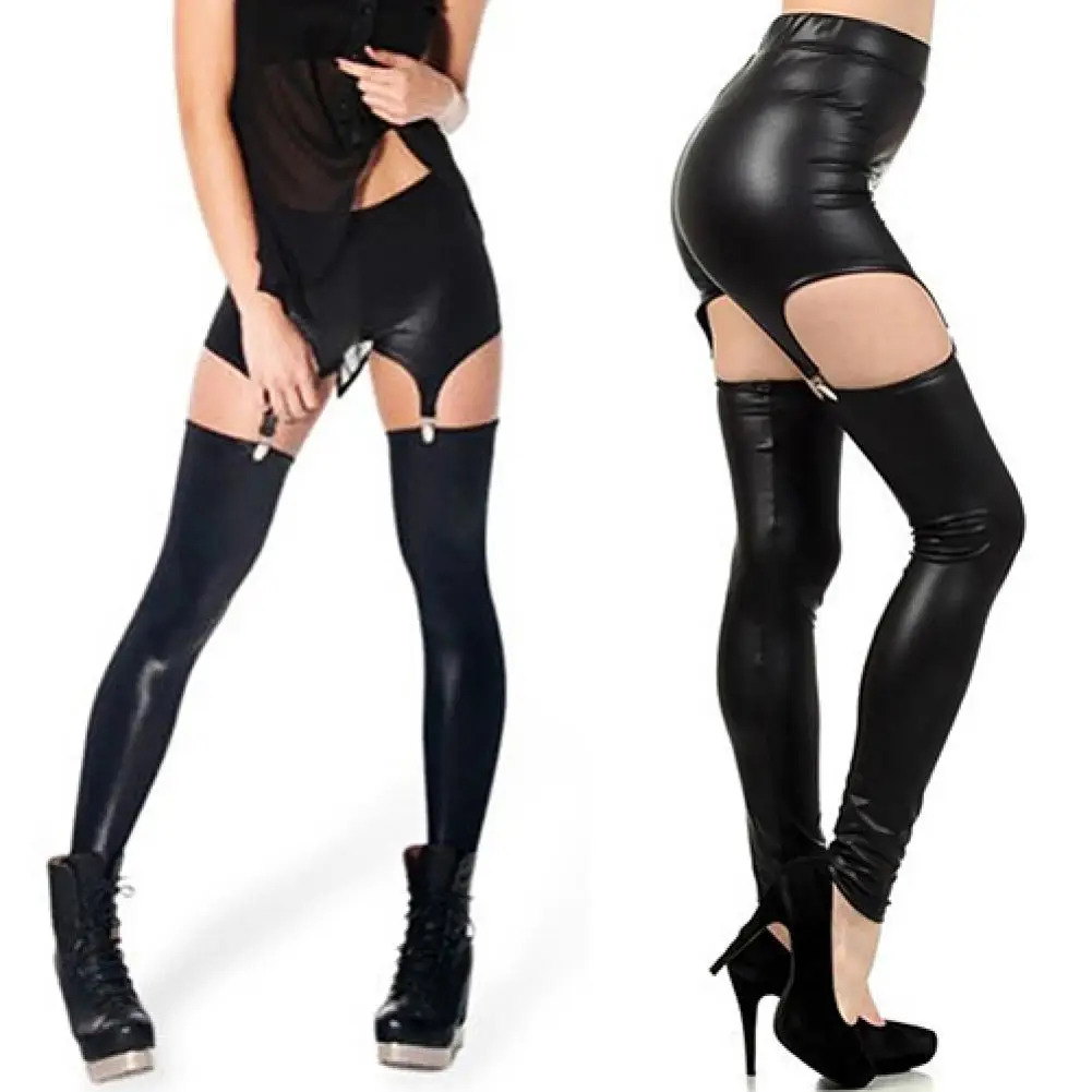 2022 Pants Faux Leather Women Tight Suspender Leggings Buckle Waist Garter Pants брюки женские