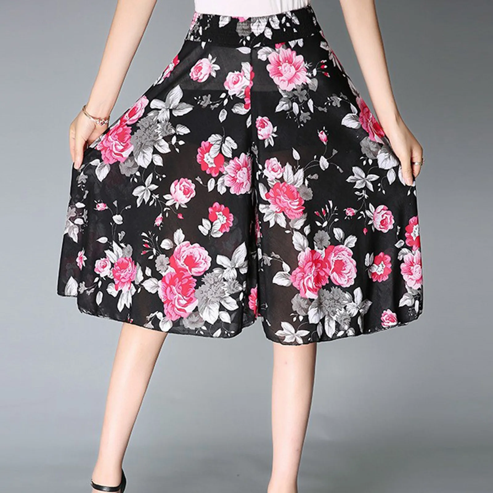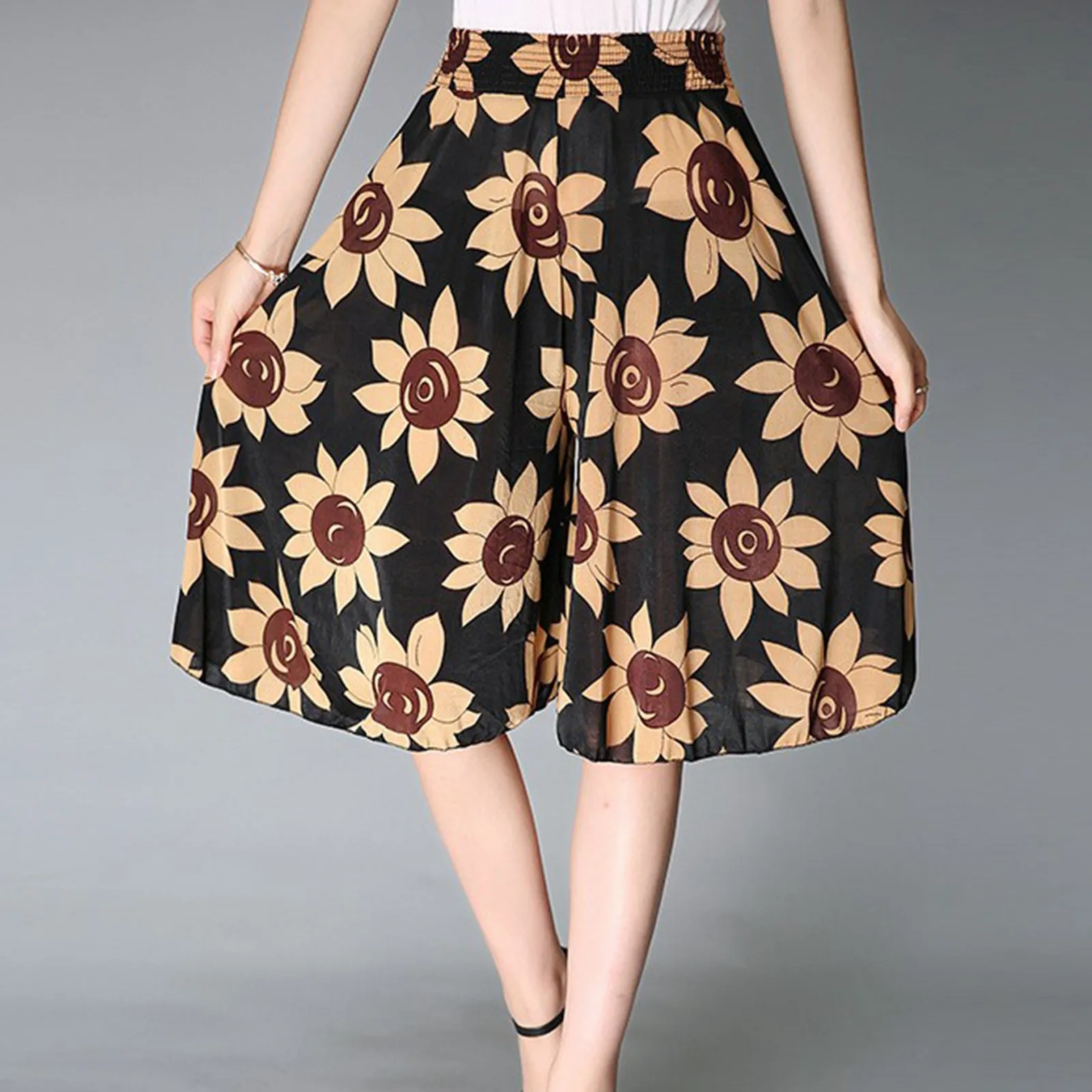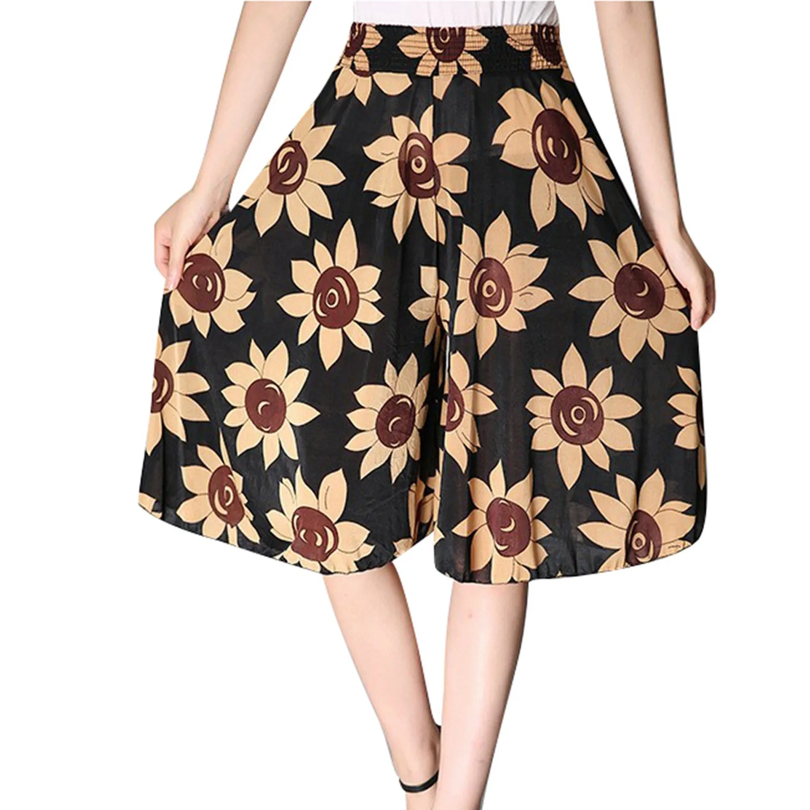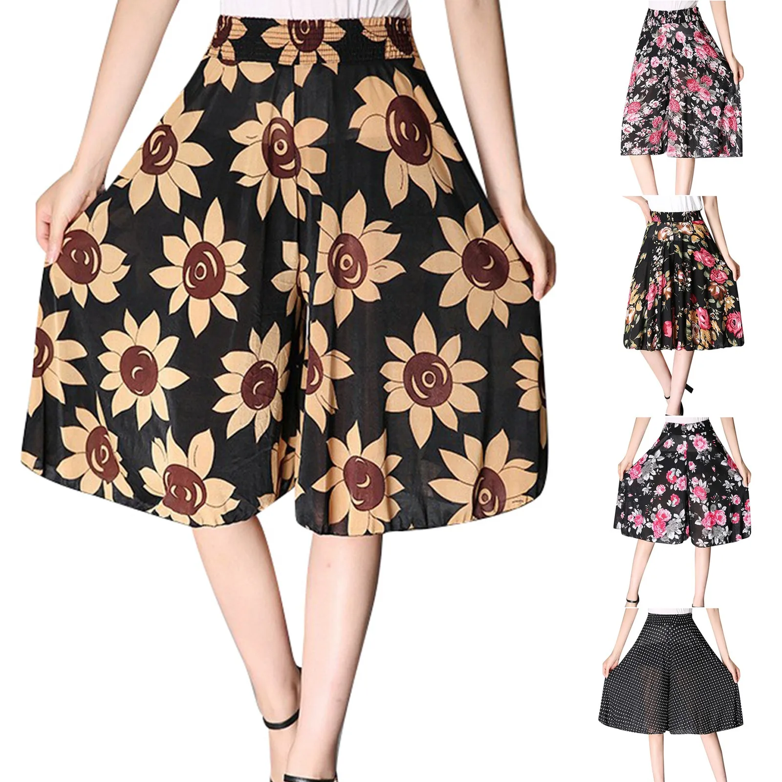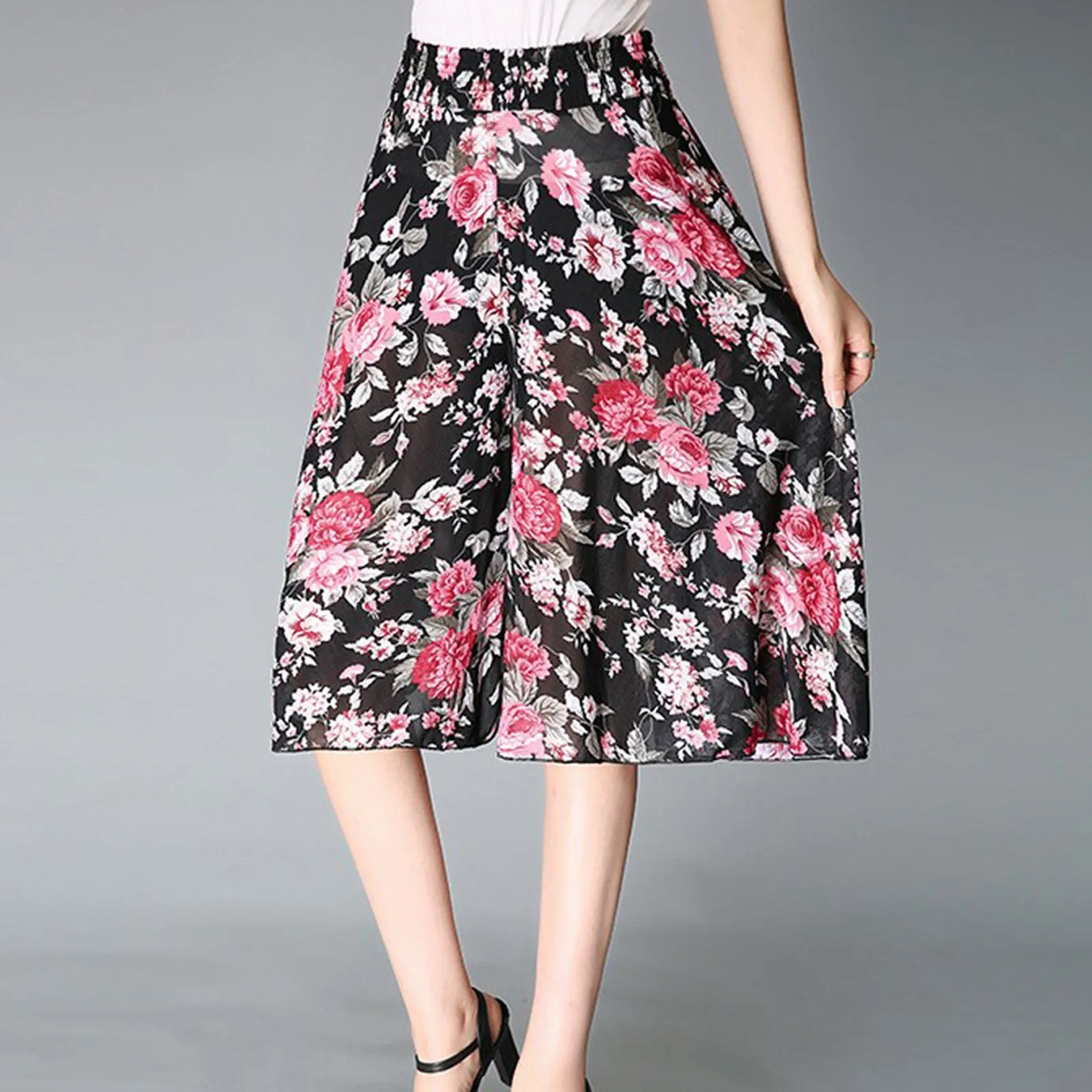 Women's Fashionable Printed Elastic Waist Thin Wide Leg Pants High Waisted Skirt Pants Cute Casual Pants for Women