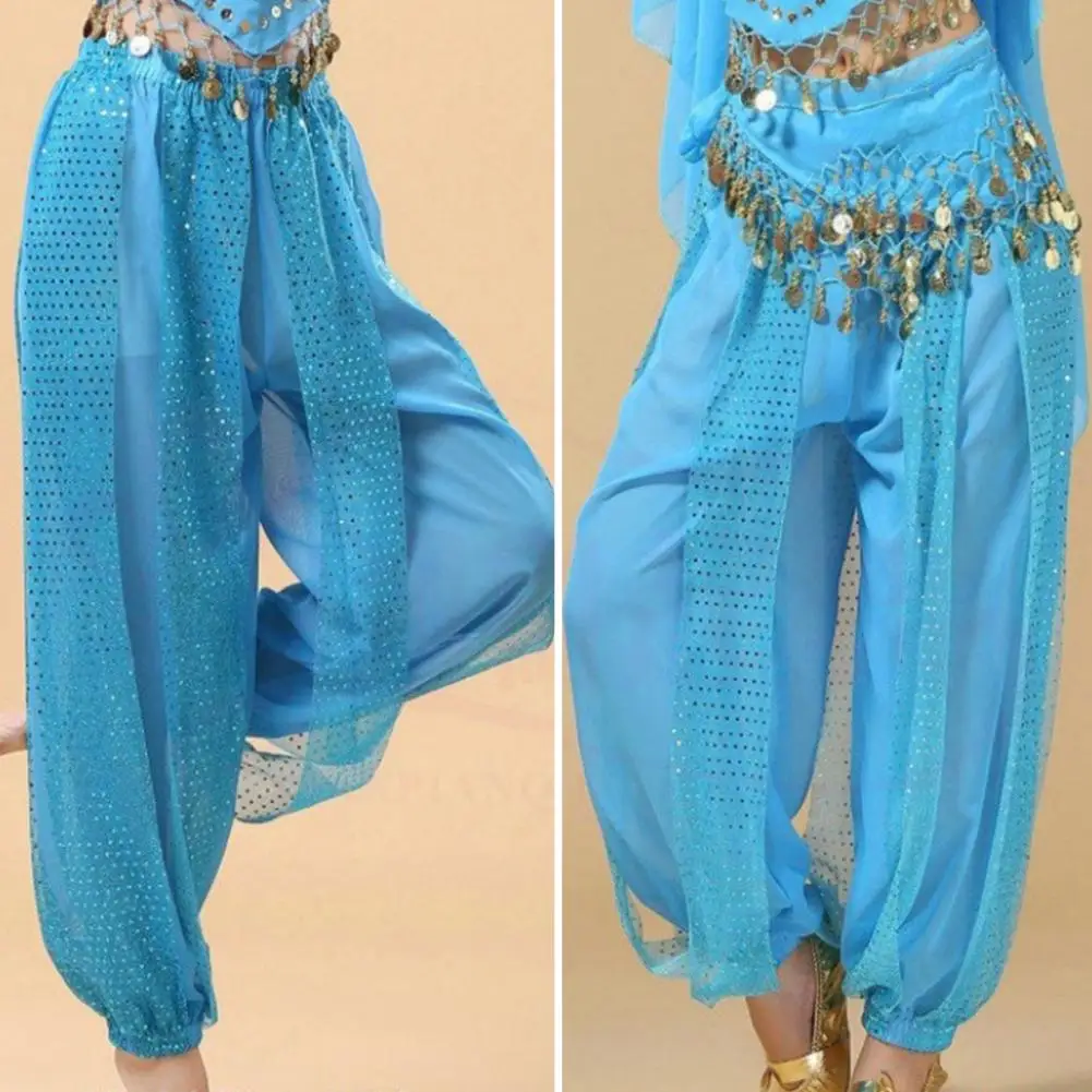 Name | Dance Pants Sequined Folk Dance Hip-hop Performance Pants for Women Elastic High Waist Solid Color Bloomers Belly Dance Costume |