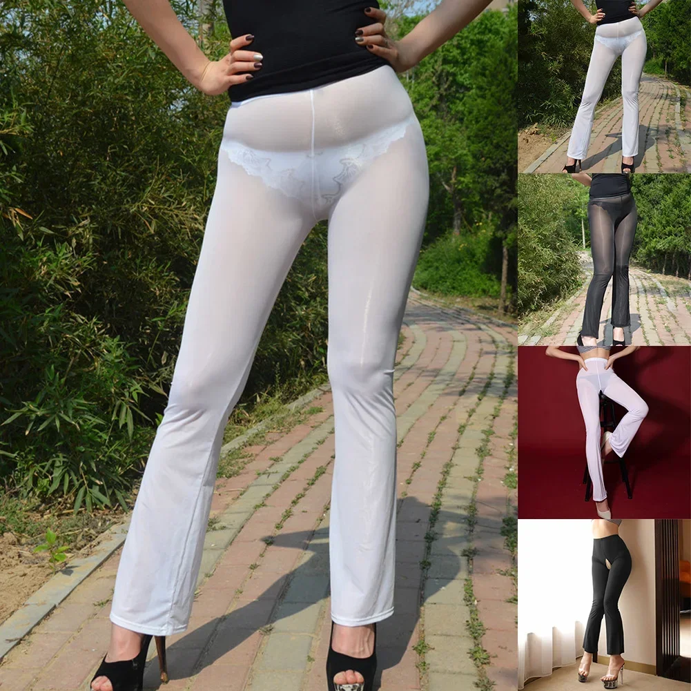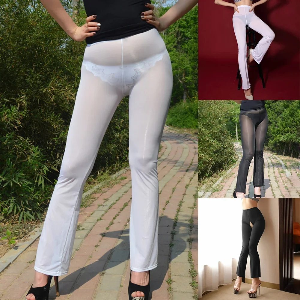 Name | Trousers Pants Sexy Sheer Smooth Solid Color Women Crothless Daily Flared Trousers High Waist Holiday Ice Silk |