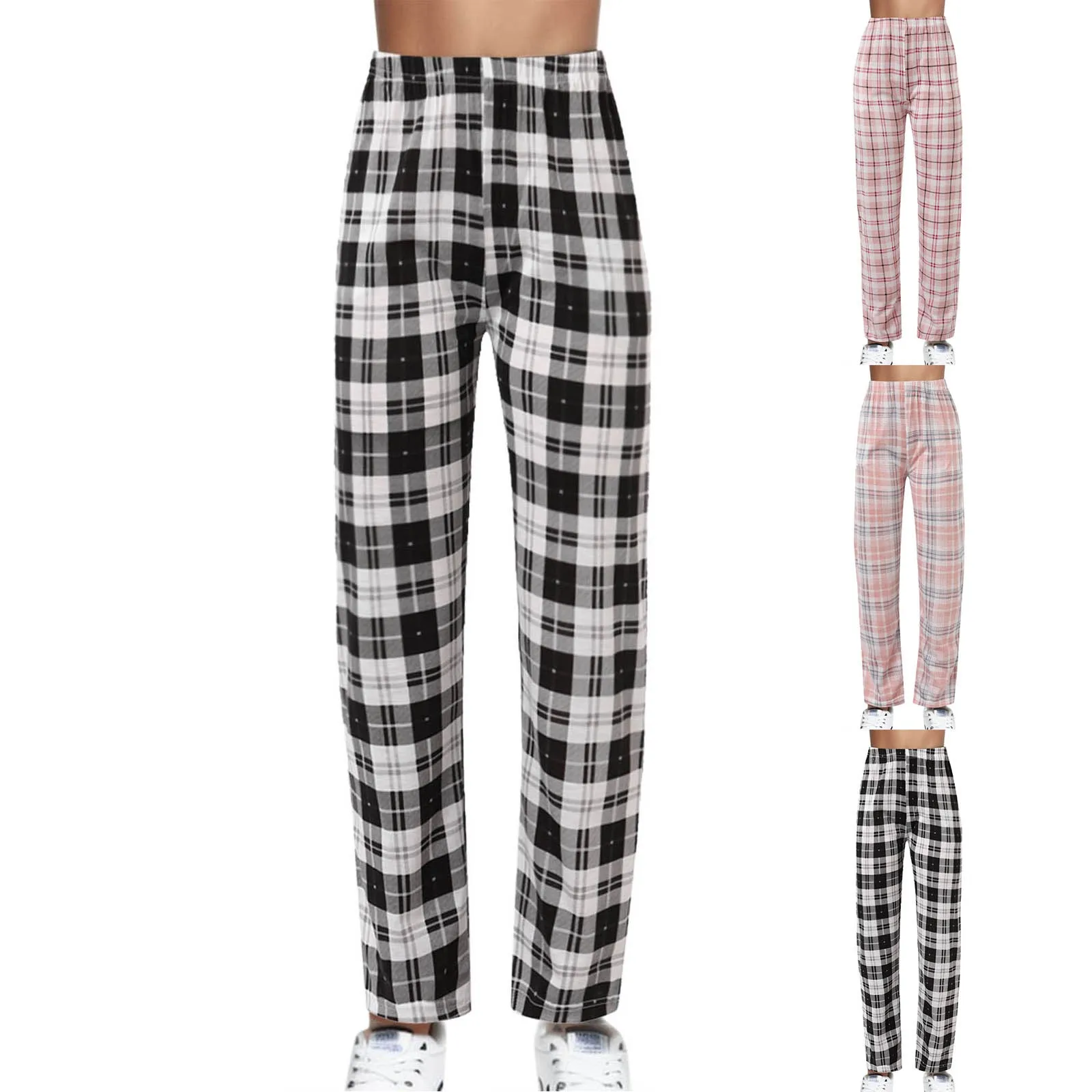 Name | Women's Thin Pajama Pants Casual Home Pants Loose Plaid Fashion Elastic High Waist ide Leg Women Pant Sport Trousers Streetwear |