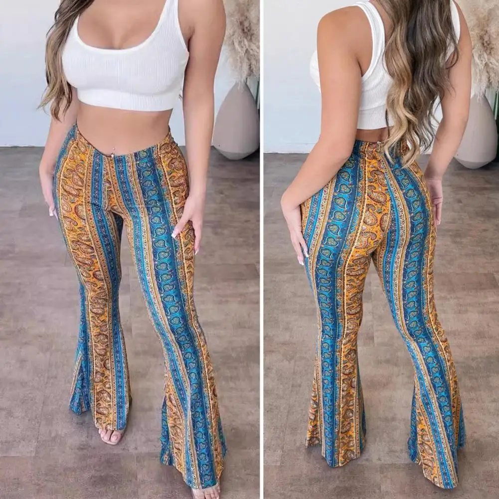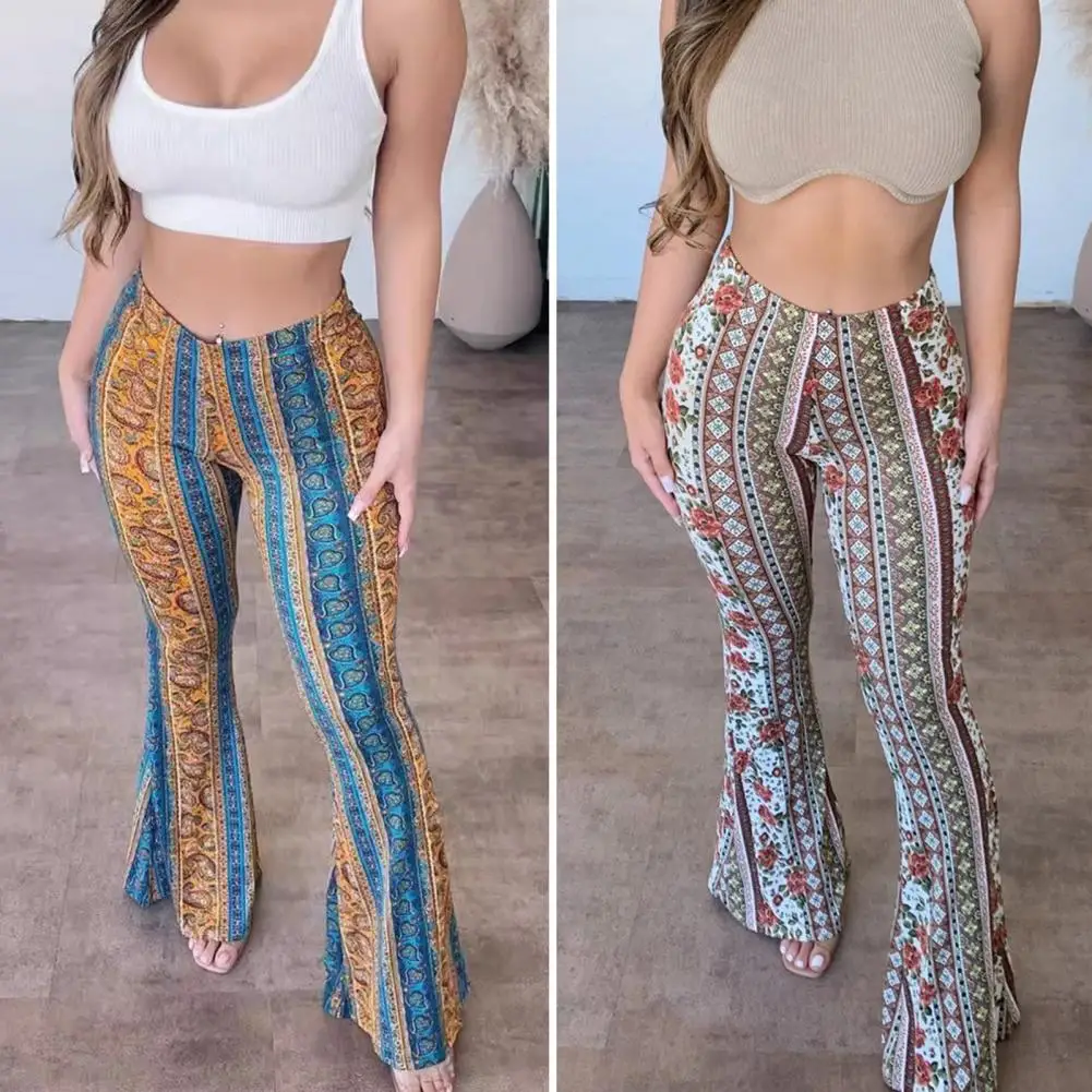 Name | Women Retro Flared Trousers Ethnic Printed Bootcut Pants Floral Print Ethnic Style Women's Flared Pants Retro High for Sexy |